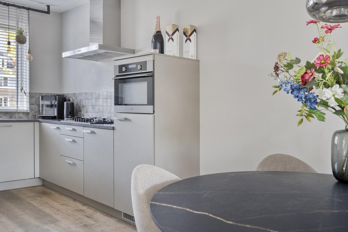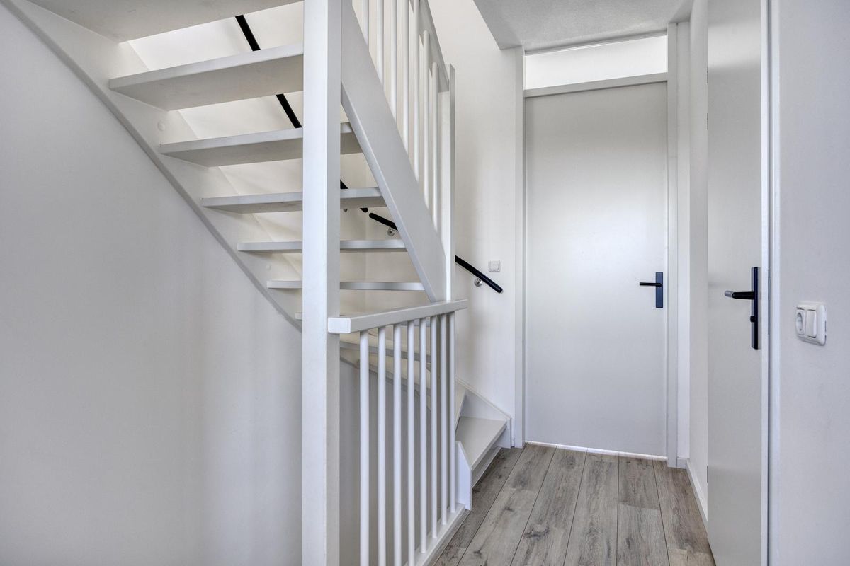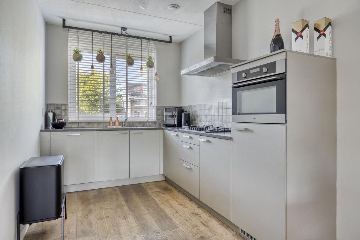 Via de verzorgde voortuin bereik je de entree met hal, meterkast, trapopgang en een modern toilet. De ruime, uitgebouwde woonkamer is een heerlijke plek om samen te komen: veel licht, een mooie houten vloer en openslaande deuren naar de tuin. De open keuken in moderne kleurstelling is compleet uitgerust met inbouwapparatuur, zodat koken hier een plezier is. In de woonkamer is nog een afgesloten trapkast aanwezig welke nabij de keuken is gelegen. Hierdoor is deze bergruimte te benutte als opslag voor proviand.