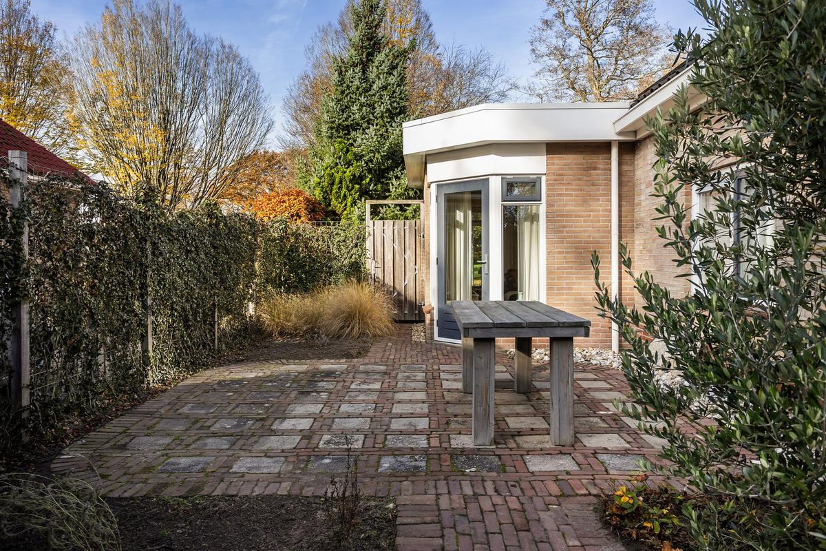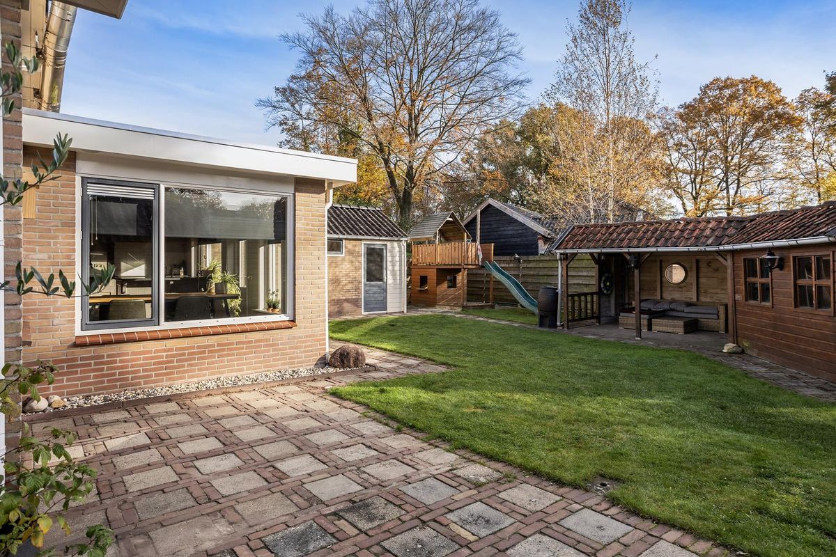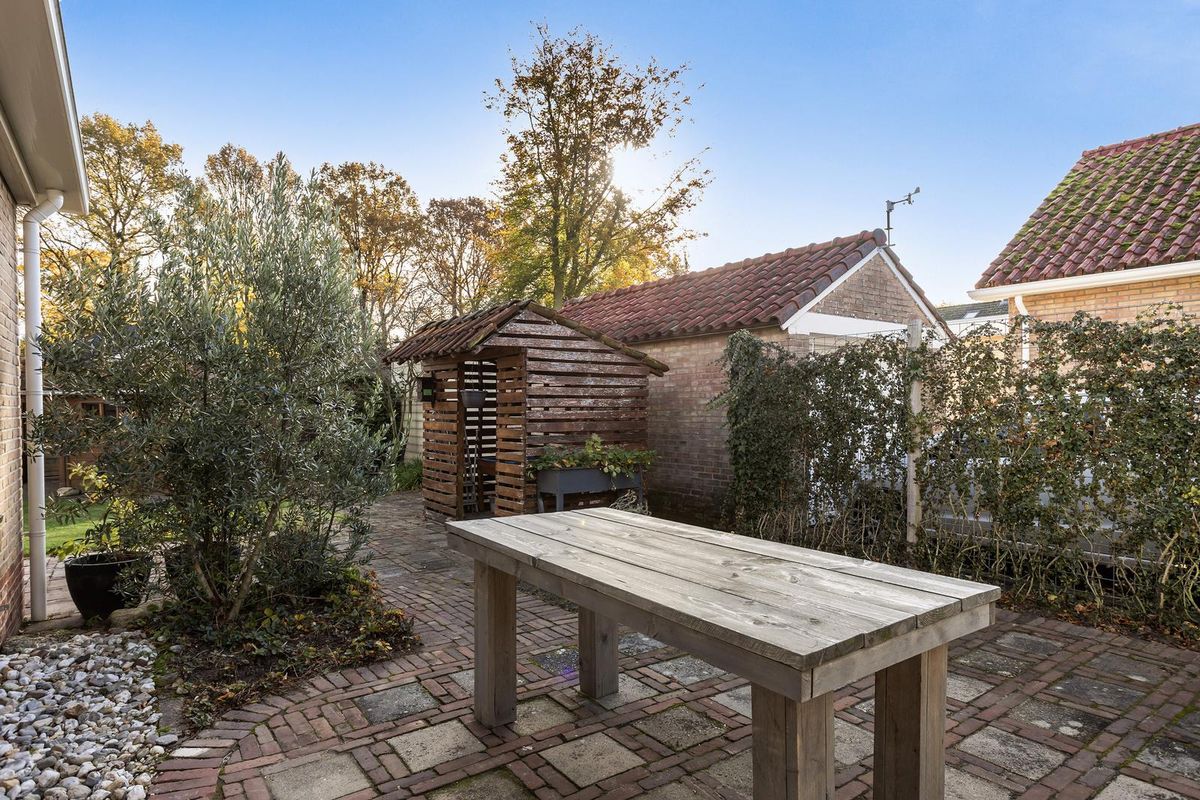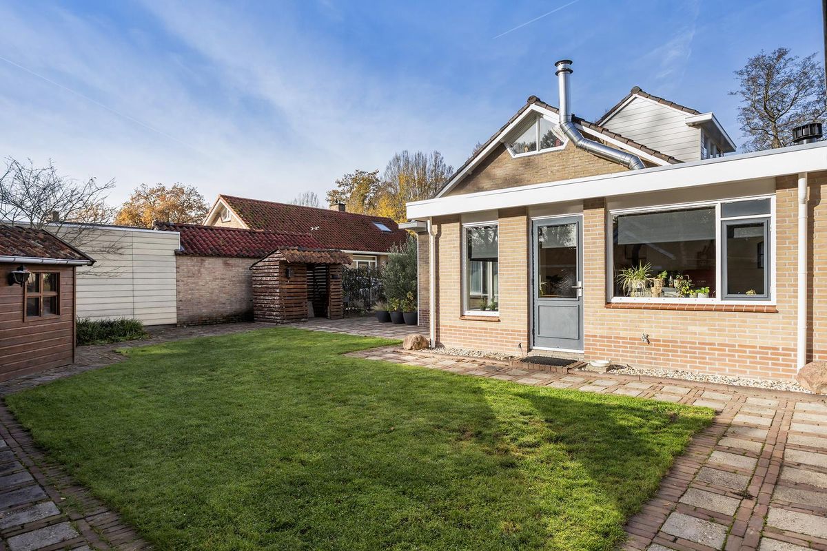 Tuin: keurig aangelegde tuin rondom het huis met meerdere terrassen, veel privacy en een vrije en groene woonbeleving. Op eigen terrein is voldoende parkeergelegenheid aanwezig voor meerdere auto's. Er is tevens een aangebouwde, grotendeels geïsoleerde, garage aanwezig alsmede 2 aangebouwde stenen bergingen en een eenvoudige houten berging met overdekt terras. De locatie is zeer geliefd vanwege de ruime opzet van de straat, de landelijke woonbeleving nabij o.a. het eeuwenoude Middendorp met zijn monumentale Saksische boerderijen en de gunstige ligging nabij het centrum.
