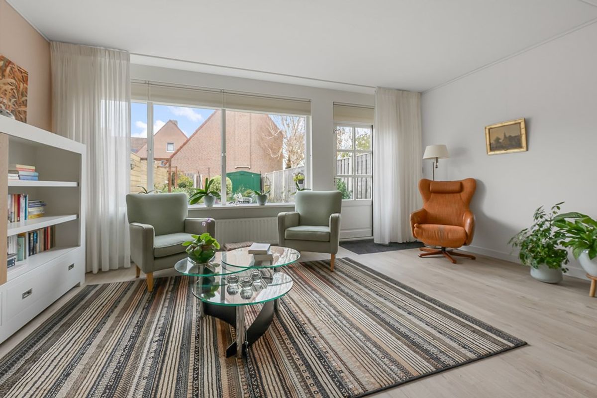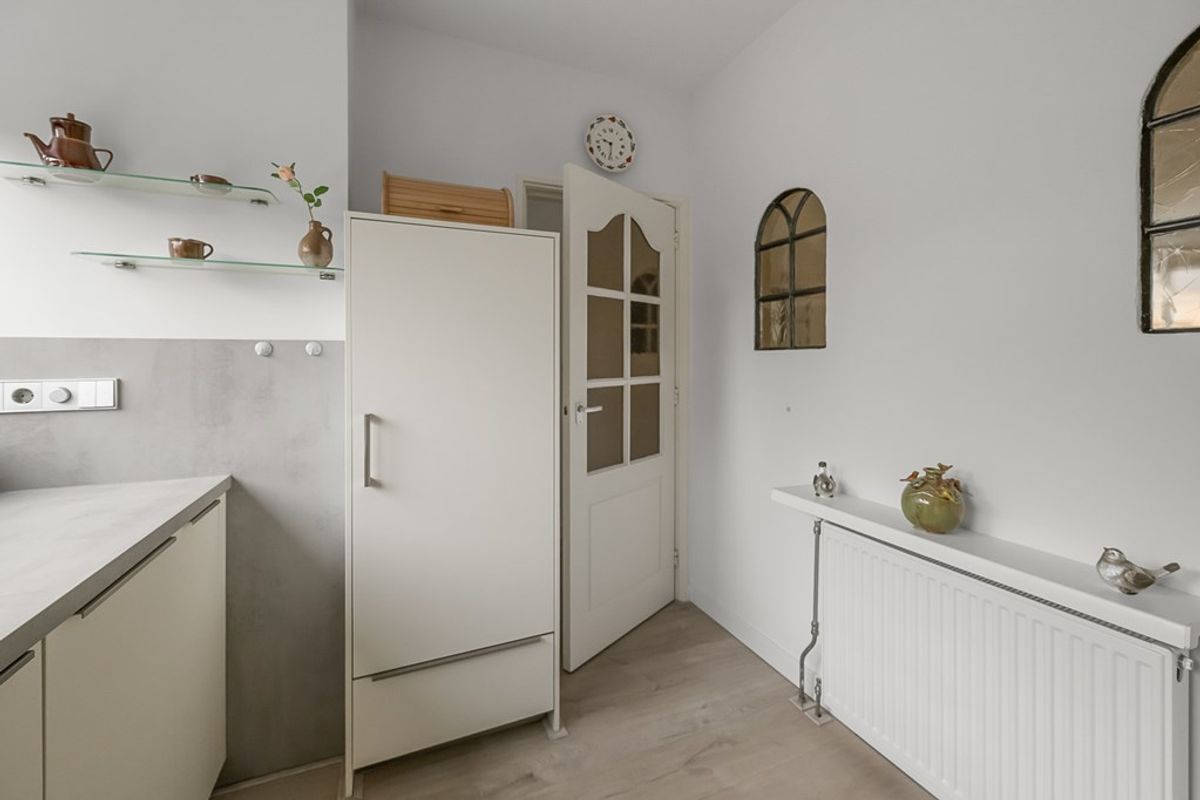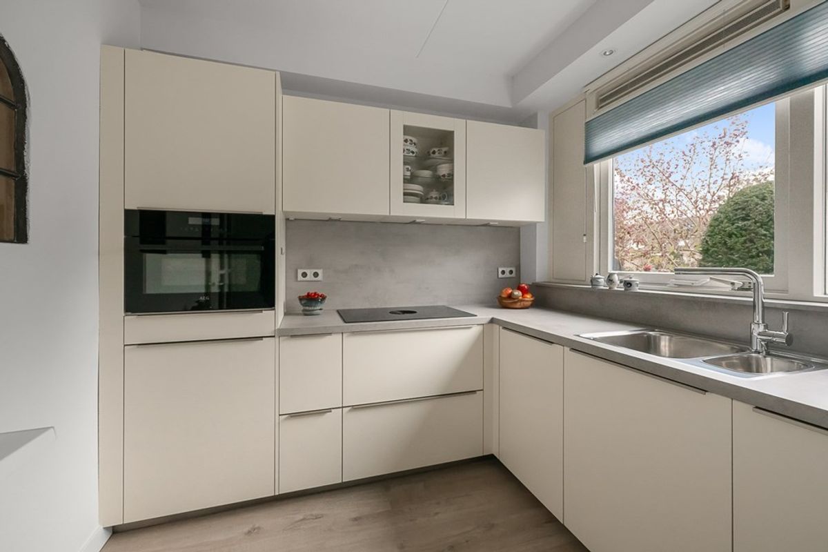 Ruime hal met entree, toilet en meterkast. De woonkamer is tuingericht, licht en comfortabel en biedt voldoende ruimte voor een fijne zit- en eethoek. De keuken is afgesloten van de woonkamer, wat zorgt voor rust tijdens het koken en een opgeruimd woongedeelte. De keuken (2022) is uitgerust met moderne inbouwapparatuur en beschikt over veel werk- en bergruimte, ideaal voor iedereen die van koken houdt.