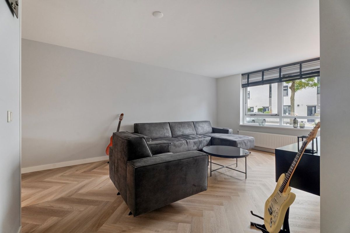De woonkamer is een lichte en uitnodigende ruimte waar direct een gevoel van rust en comfort ontstaat. De grote ramen zorgen voor een overvloed aan daglicht en bieden een prettig uitzicht op de omgeving.