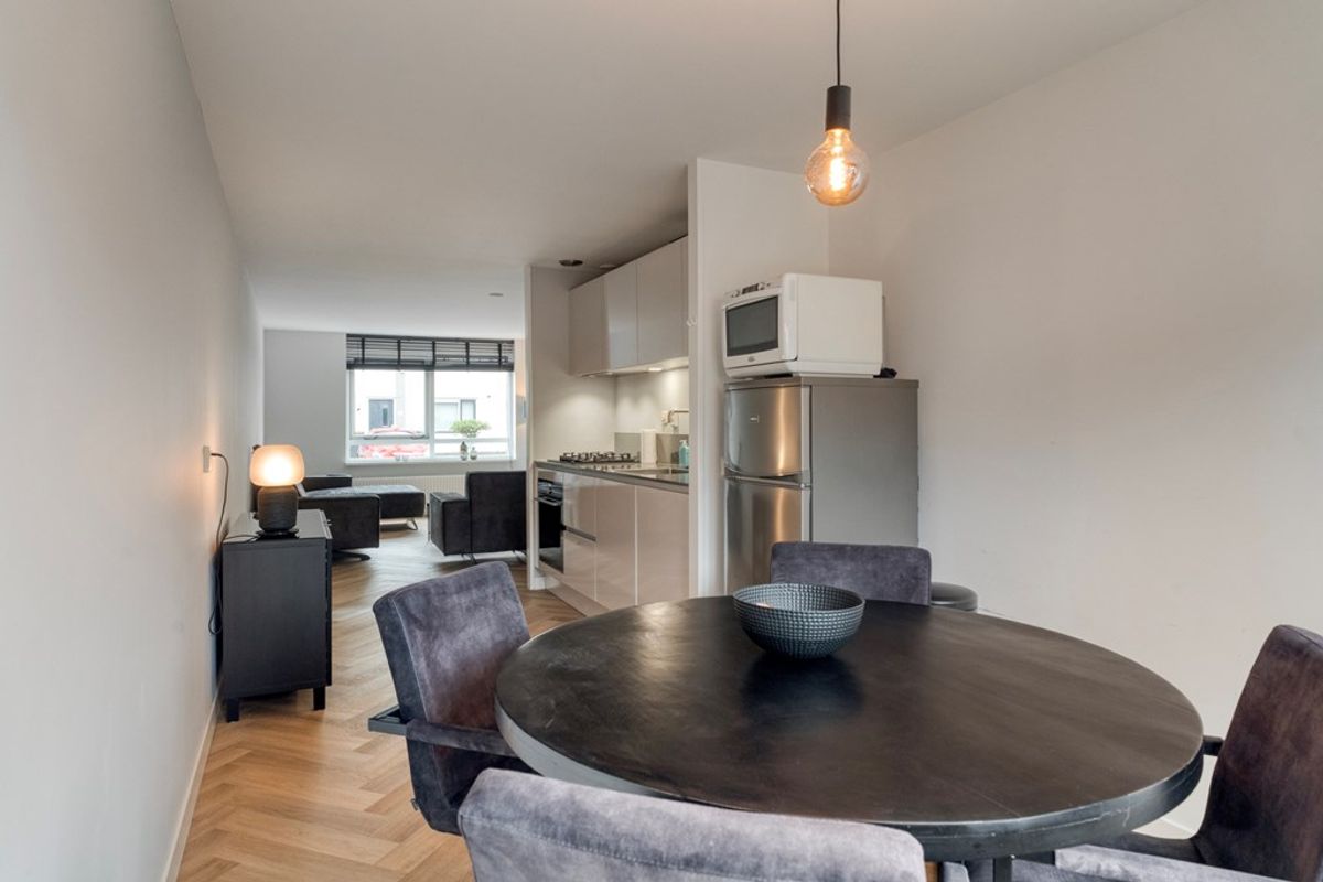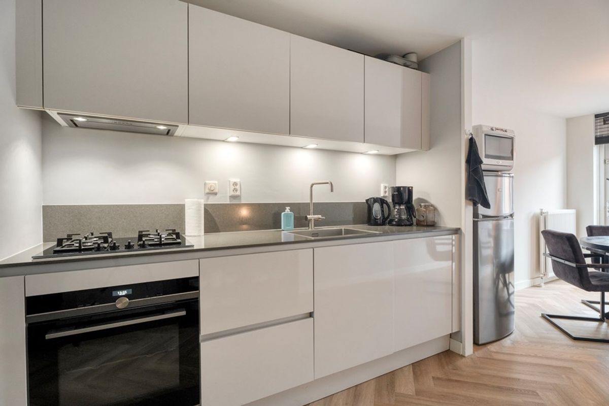 De keuken vormt het hart van het appartement: modern, stijlvol en met voldoende ruimte om te koken en tegelijk contact te houden met je gasten. Aan de ene zijde grenst een gezellige eethoek, aan de andere kant een fijne, lichte woonkamer die comfortabel en ruim aanvoelt.