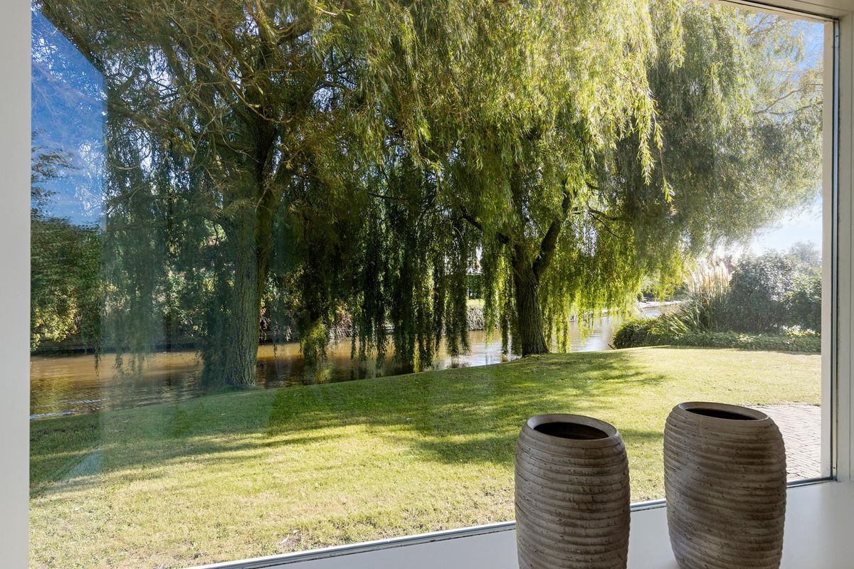 Bij het betreden van de woonkamer valt het zicht op de prachtige waterpartijen aan de groene tuin direct op. Wat een plek! Door de vele ramen aan alle kanten van de woonkamer komt er veel licht binnen. De verzorgde tuin rondom de woning heeft prachtige statige treurwilgen aan de waterkant hetgeen veel privacy biedt. Iets dat benadrukt wordt doordat de woning is gelegen op een hoekperceel aan een doodlopende straat van deze ruim opgezette wijk.