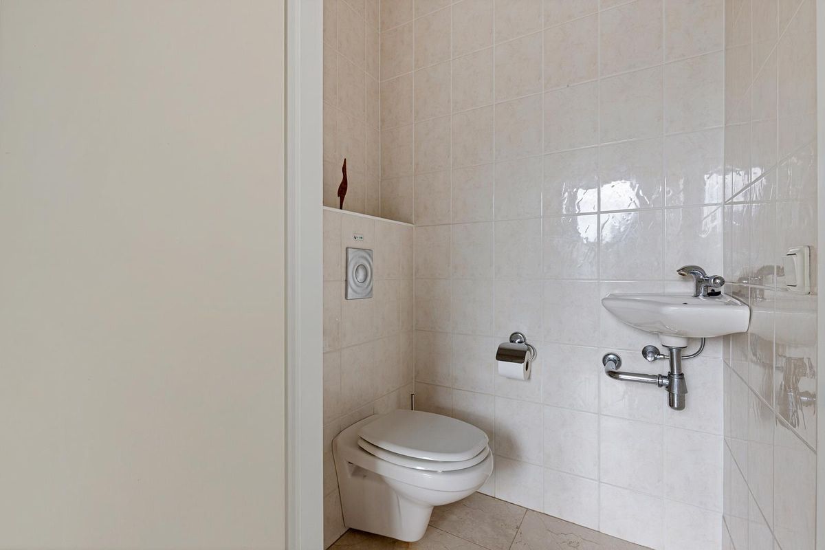 In de naastgelegen bijkeuken is genoeg ruimte voor de witgoedapparatuur. De bijkeuken heeft een deur naar de tuin en een deur naar de inpandige garage.