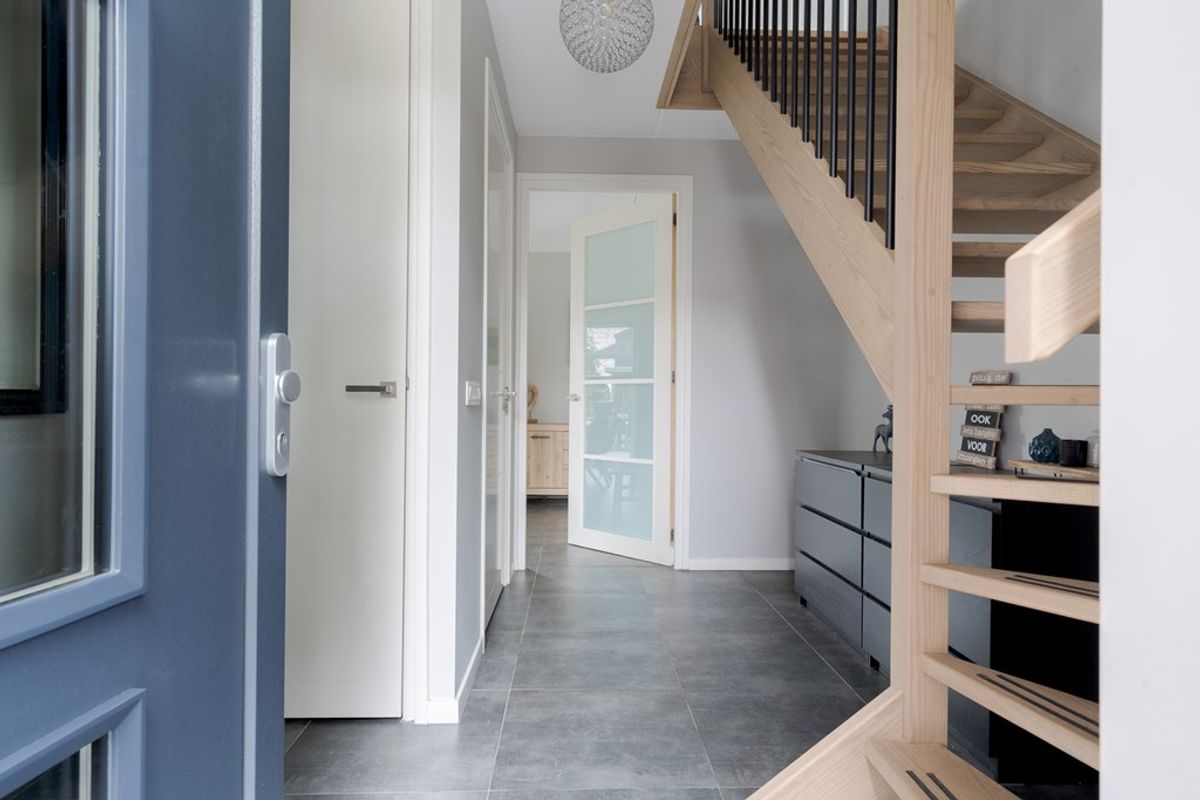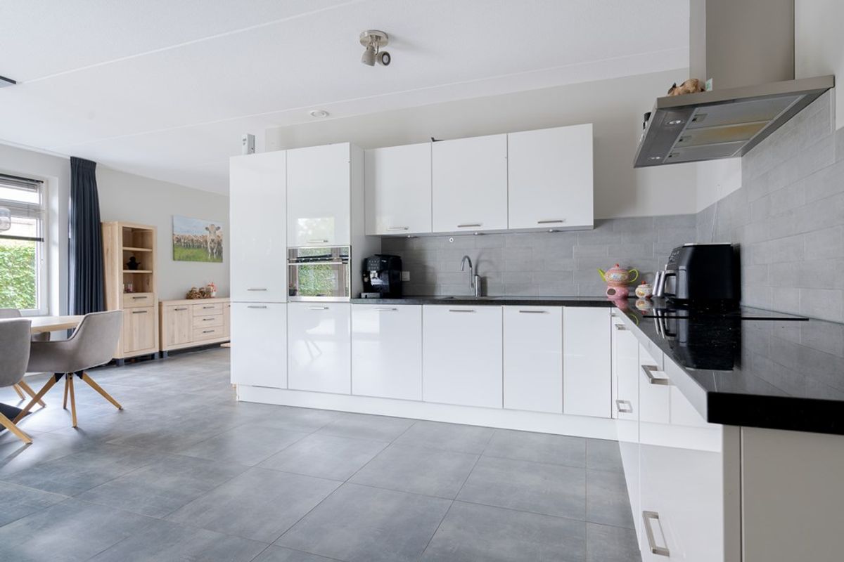 Ruime entree met toilet, meterkast en trapopgang; Heerlijke woonkeuken voorzien van een luxe keukenopstelling. De keuken is zeer compleet uitgerust met een inductie kookplaat, afzuigkap, vaatwasser, Koelkast, vrieskast en een combimagnetron. Riante en lichte woonkamer; In de praktische bijkeuken is plaats voor de wasmachineopstelling; De garage is binnendoor bereikbaar.