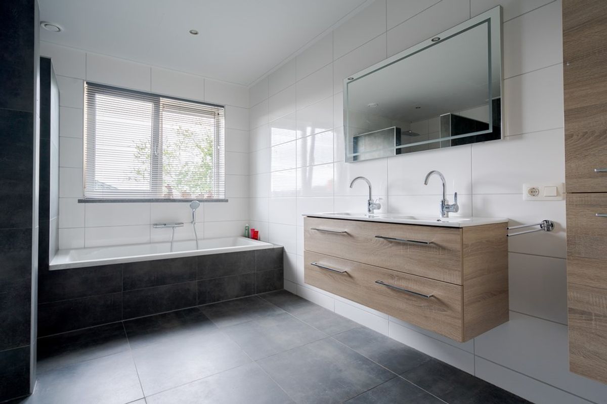 Overloop met vaste kast; 3 riante slaapkamers waarvan de grootste slaapkamer is voorzien van een eigentijdse vaste kasten; De prachtige badkamer is voorzien van een ruime inloopdouche, ligbad, 2e toilet en een badmeubel met dubbele wastafel.
