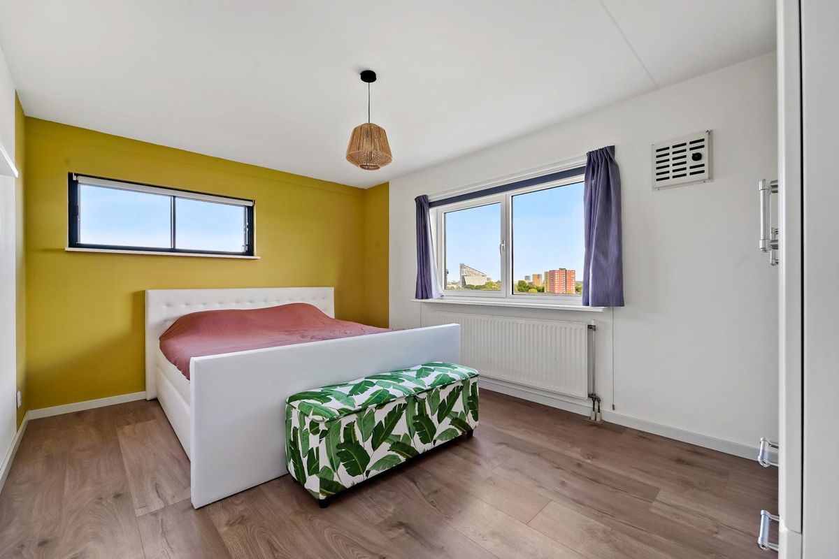 Well-maintained 3-room apartment with a large balcony on the ninth floor in the Morgenstond district. This apartment enjoys wonderful natural light thanks to its corner position and offers stunning views. The property features two generously sized bedrooms, a spacious living/dining room with open kitchen, and a modern bathroom. In addition, the apartment comes with its own parking space and a storage unit on the ground floor!