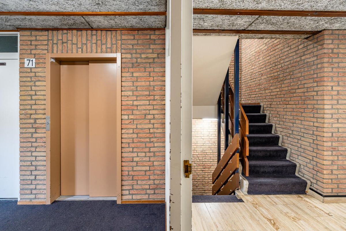 Centrale entree met beltableau met videofooninstallatie en brievenbussen. De hal geeft toegang tot het trappenhuis en de liftinstallatie.