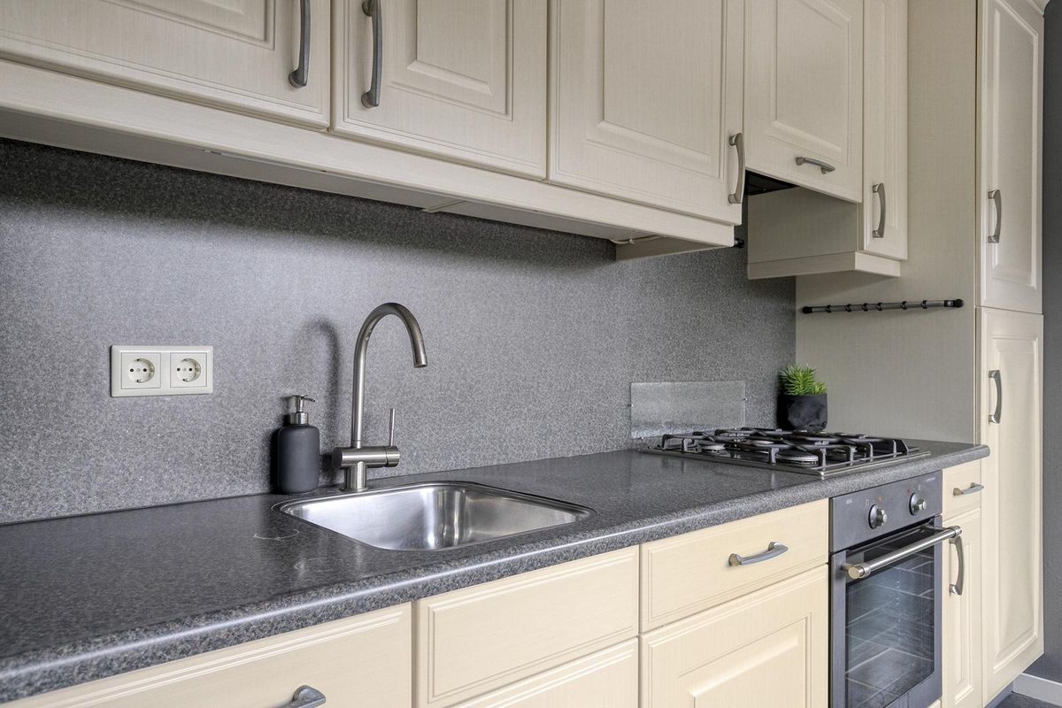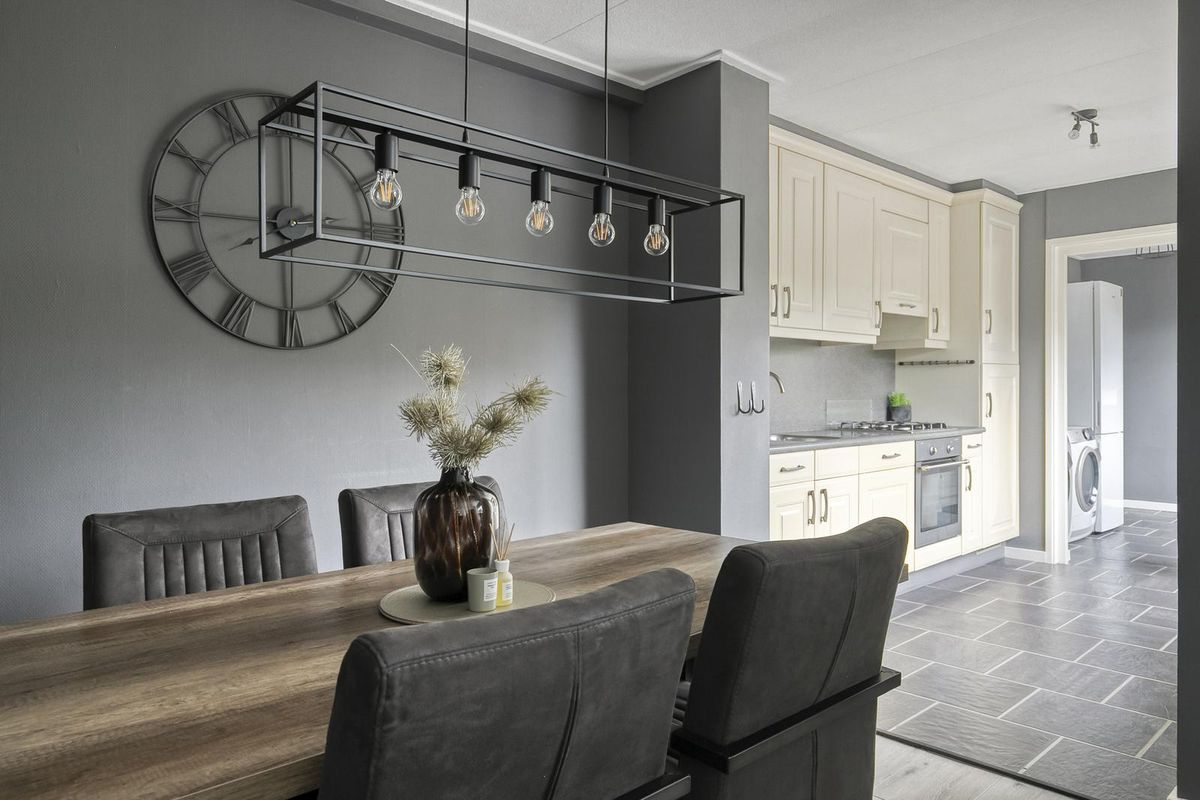 Wanneer u via de hal – met meterkast, trapopgang, trapkast en toilet – binnenstapt, wordt u direct meegenomen naar de warme en uitnodigende woonkamer. Aan de voorzijde bevindt zich de zithoek, een heerlijke plek om tot rust te komen met uitzicht over de straat. Hier kunt u zich al voorstellen hoe u ’s avonds gezellig met het gezin of met vrienden bij elkaar zit. Aan de achterzijde van de woning is de eethoek gesitueerd. Dankzij de open verbinding met de keuken vormt dit het hart van het huis: een plek waar koken en tafelen naadloos in elkaar overlopen. De woning is aan de achterzijde uitgebouwd, waardoor er ruimte is ontstaan voor een verrassend ruime keuken. De lichte kleurstelling geeft de ruimte een frisse uitstraling en de keuken is volledig uitgerust met een gaskookplaat, oven, afzuigkap, koelkast en vaatwasser. Aansluitend vindt u de praktische bijkeuken, met volop plek voor de wasmachine en droger – een fijne toevoeging die zorgt voor comfort en gemak in het dagelijks gebruik.