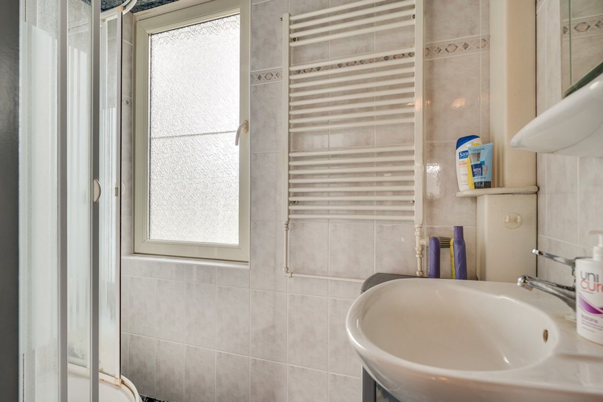 De overloop geeft toegang tot drie ruime slaapkamers, een eenvoudige badkamer en de vaste trap naar de tweede verdieping. De slaapkamers aan de achterzijde van de woning zijn voorzien van rolluiken. De badkamer heeft een douchecabine, wastafel en een design-radiator.