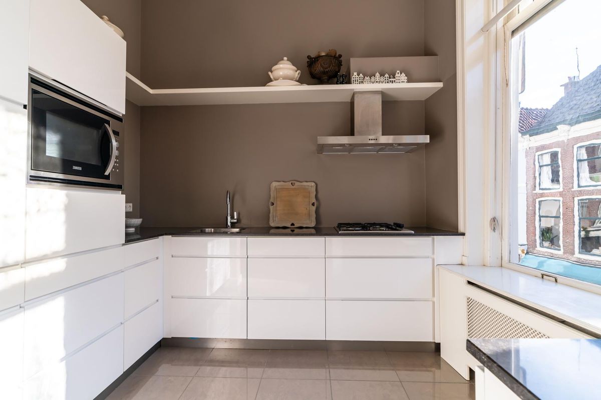 De open keuken is voorzien van een vaatwasser, koelkast, vriezer, combi- oven, afzuigkap en gasfornuis.