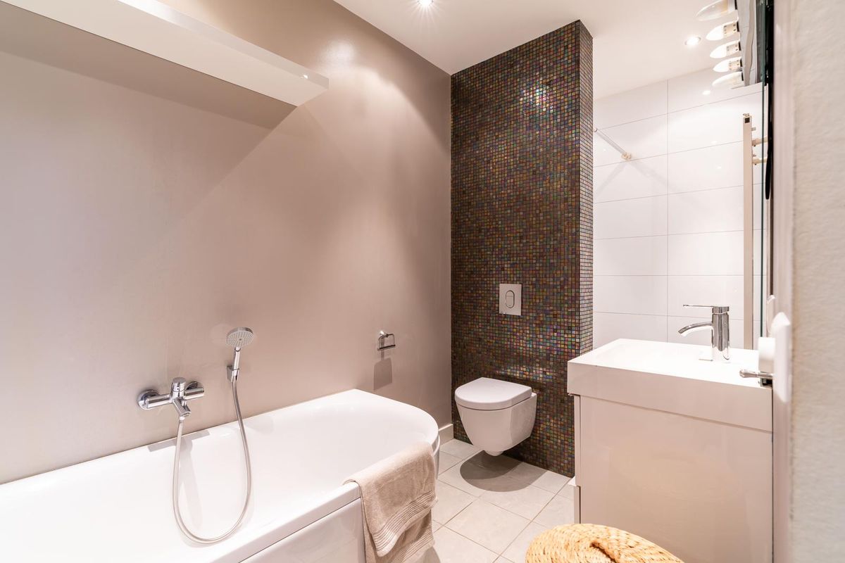 De slaapkamer geeft toegang tot het terras (ZW) doormiddel van openslaande deuren. De ensuite 2e badkamer is voorzien van een separate inloop douche, ligbad en wastafelmeubel.