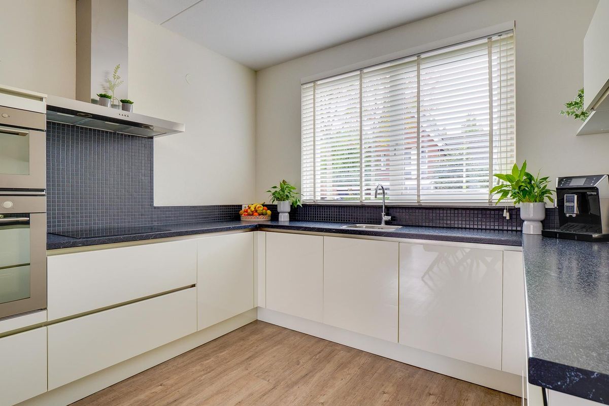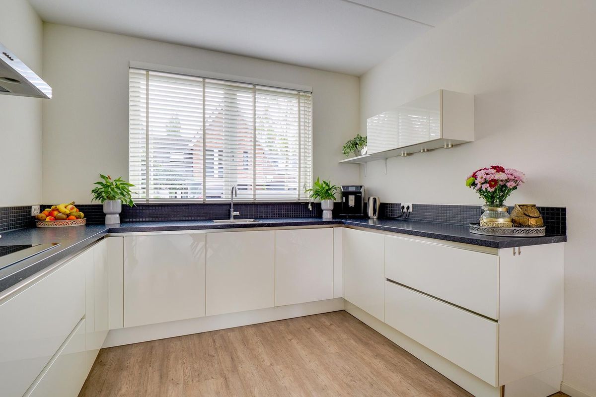 Op de begane grond bevindt zich een royale woonkamer van circa 28 m², met aansluitend een open keuken van 11 m². De keuken is voorzien van diverse inbouwapparatuur, waaronder een aparte oven, combimagnetron en vriezer. De gehele benedenverdieping is voorzien van vloerverwarming, wat zorgt voor een aangenaam binnenklimaat in elk seizoen. De keuken (2015) is ontworpen met oog voor detail: open en overzichtelijk, ideaal voor gezellige etentjes of familiedagen.