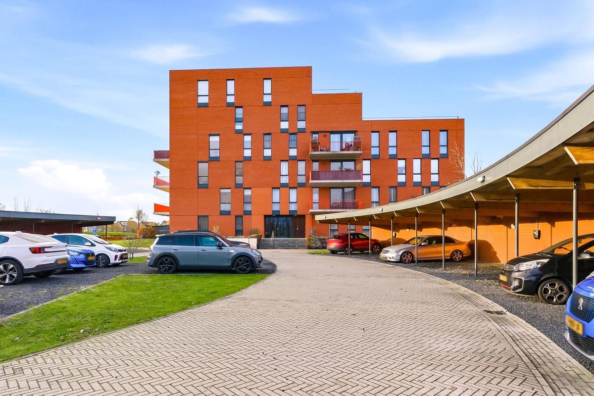 Eigen parkeerplaats onder de carport: droog, praktisch en direct naast het gebouw. De eigen parkeerplaats is voorzien van een laadpaal.