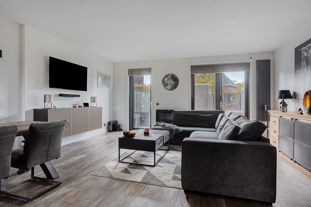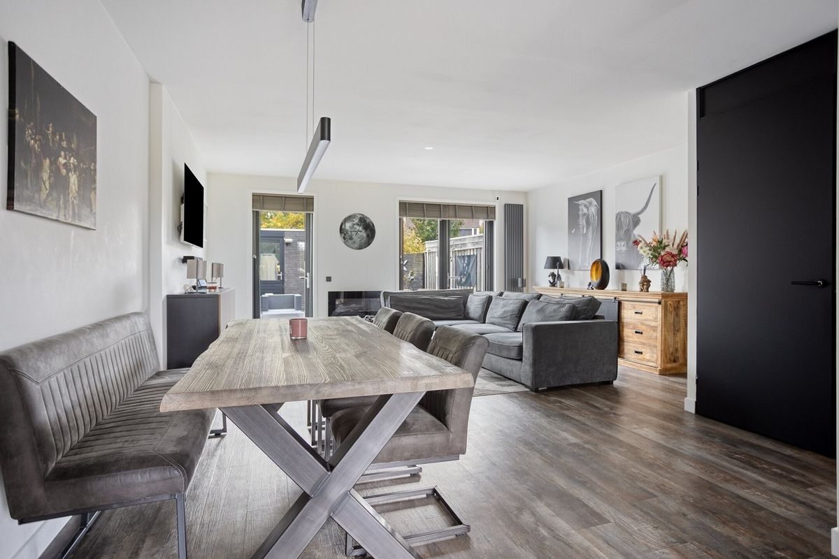 Entree, hal garderobe, meterkast, ruim zwevend toilet, living met openslaande deuren naar de achtertuin, georiënteerd op het zuidwesten. • De complete keuken in houtachtige kleurstelling aan de voorzijde van de woning is voorzien van koelkast, vriezer, vaatwasmachine, oven, magnetron, 4 pits-gasfornuis en afzuigkap, • De gehele benedenverdieping is voorzien van een prachtige binnendeuren en een PVC vloer met een 5 groepen vloerverwarming. • Dichte trap naar de 1e verdieping, met trapkast voorraadkast.