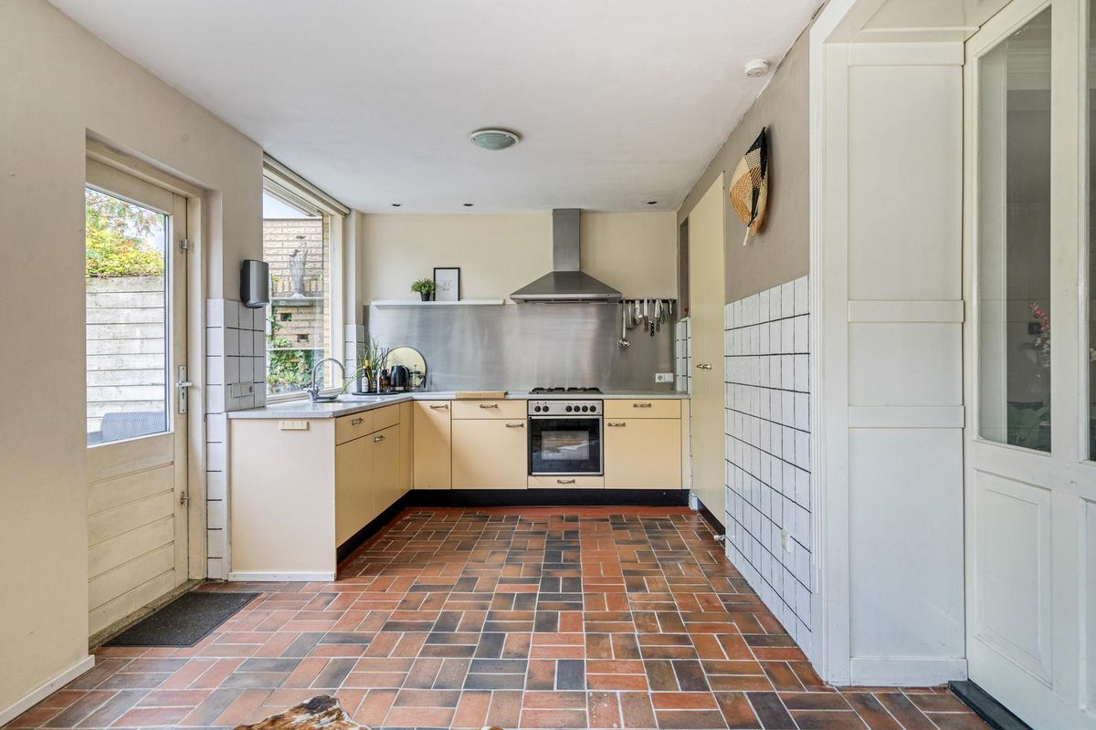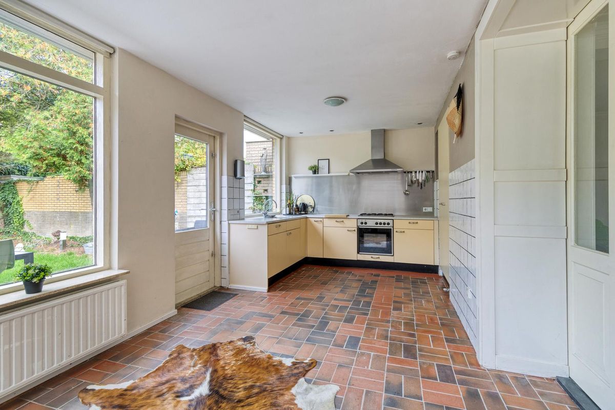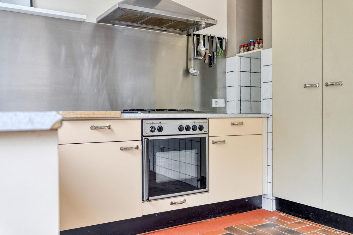 De woonkamer is heerlijk licht dankzij de grote ramen aan de straatzijde. Er is genoeg ruimte voor een comfortabele zithoek, een eethoek én kasten. De sfeervolle houtkachel zorgt voor extra warmte en gezelligheid op koude dagen. Via de karakteristieke ensuite deuren loop je de keuken in. De keuken is ruim opgezet en biedt plek voor een extra eettafel. Daarnaast is de keuken uitgerust met een fornuis, afzuigkap, oven en vaatwasser. Dankzij het lichtinval vanuit de tuin is dit een prettige plek om te koken en samen te komen.