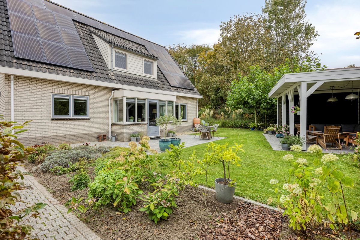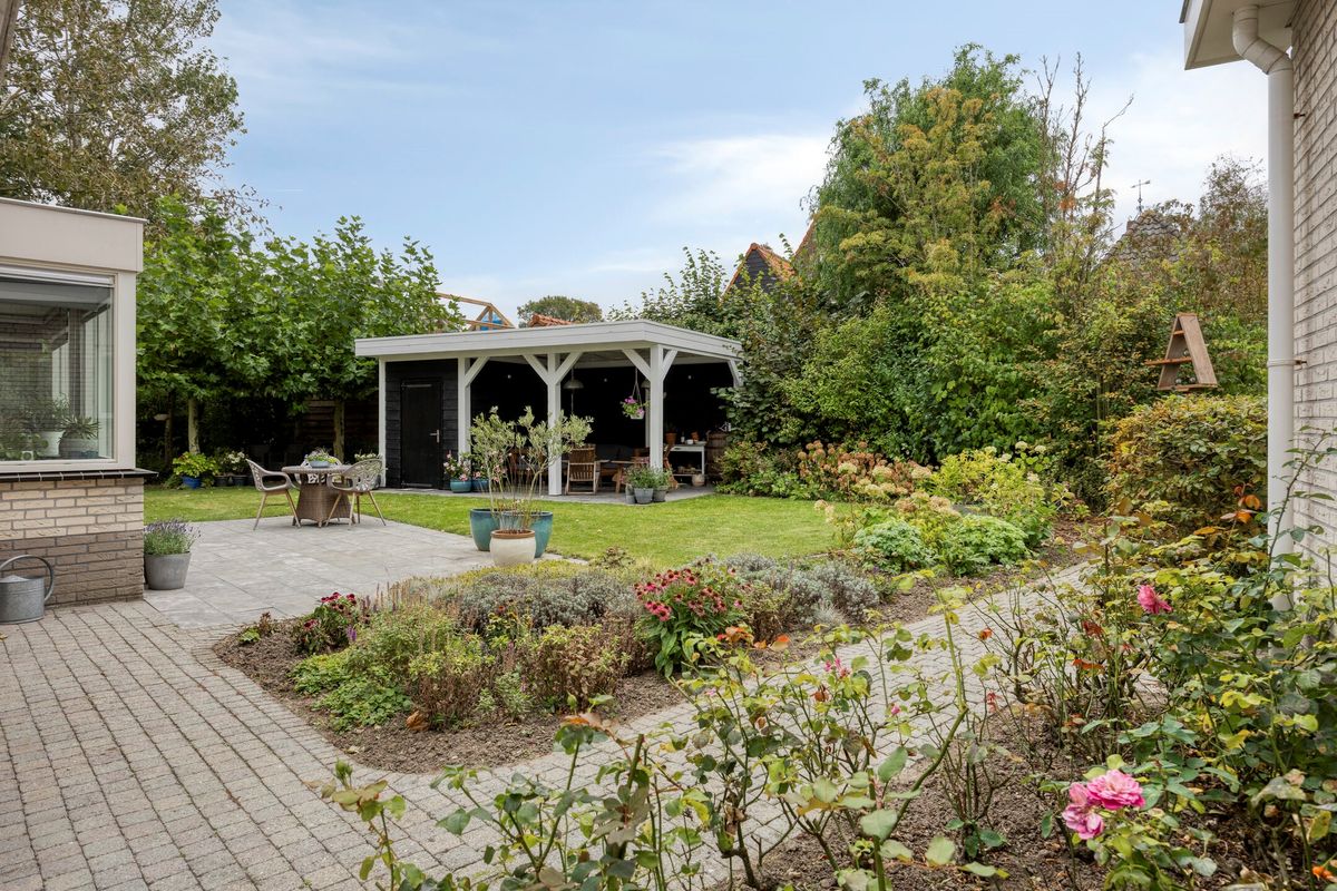 - Groene tuin rondom met overkapping