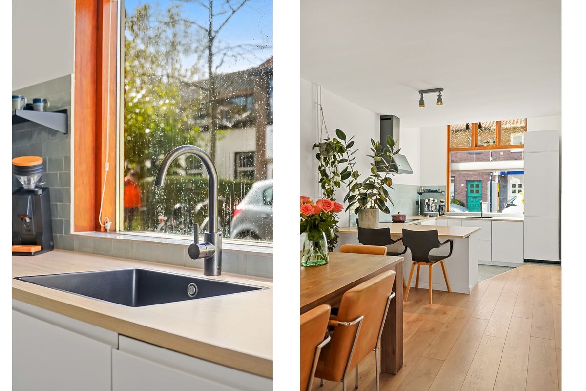 • Moderne open keuken uit 2021 met een leuke tegelvloer. De keuken is voorzien van o.a. een inductie kookplaat met afzuigkap, moderne zwarte spoelbak met mengkraan, vaatwasser, koelkast, vriezer en oven.