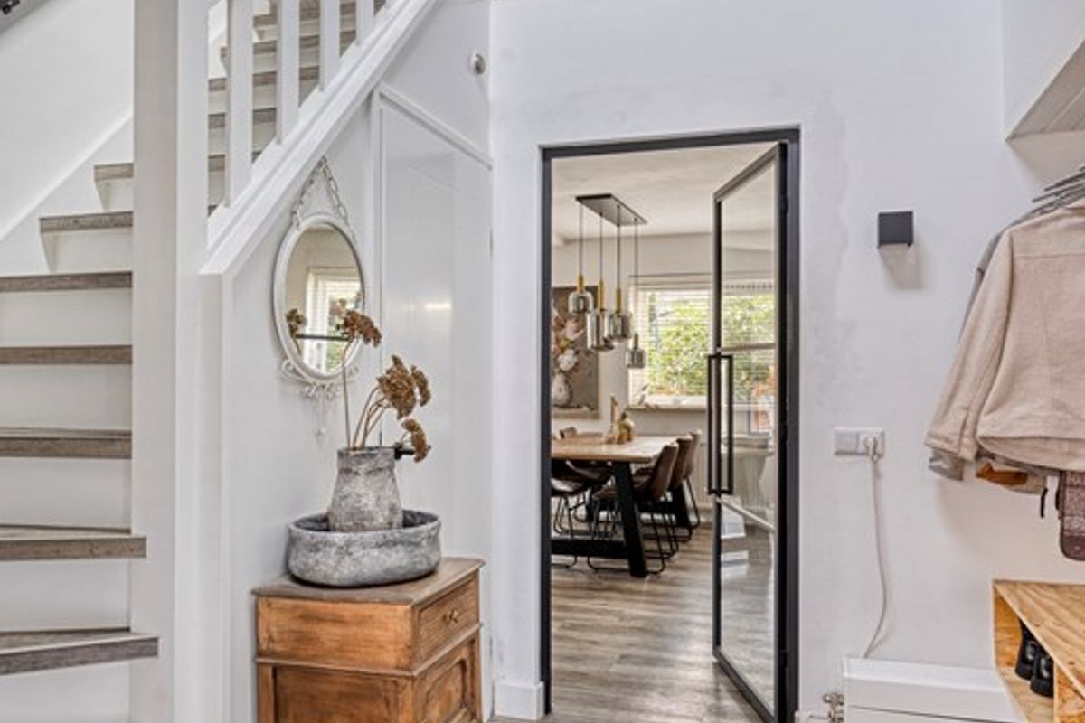 U betreedt de woning via de voortuin en de eigen oprit, waar voldoende ruimte is voor twee auto’s en u direct toegang heeft tot de garage. Ook in de straat is meer dan genoeg parkeergelegenheid aanwezig. Eenmaal binnen komt u in de verzorgde hal, die toegang biedt tot de woonkamer, de toiletruimte en de trap naar de eerste verdieping. De hal is prettig ruim opgezet en biedt voldoende plaats voor een kapstok of een stijlvol opbergmeubel, waardoor u gasten altijd netjes en uitnodigend ontvangt.