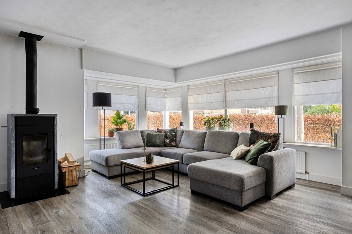 Aan de voorzijde van de woning bevindt zich de woonkamer, waar licht en ruimte samenkomen in een open indeling. Dankzij de grote ramen geniet u hier van een prettige lichtinval en een mooi uitzicht op de straat en de omliggende tuin. De woonkamer biedt volop mogelijkheden voor het creëren van een comfortabele zithoek én een gezellige eethoek. De sfeervolle haard vormt hierbij een echte eyecatcher en zorgt voor warmte en gezelligheid op ieder moment van de dag.