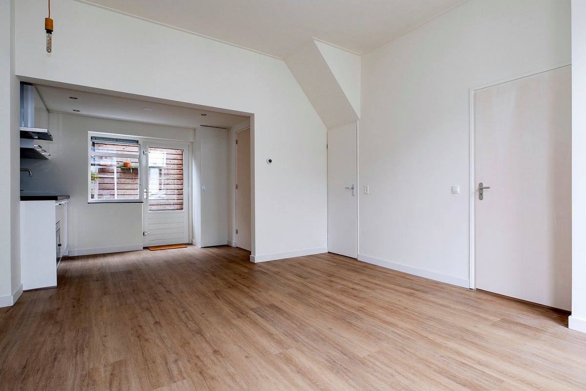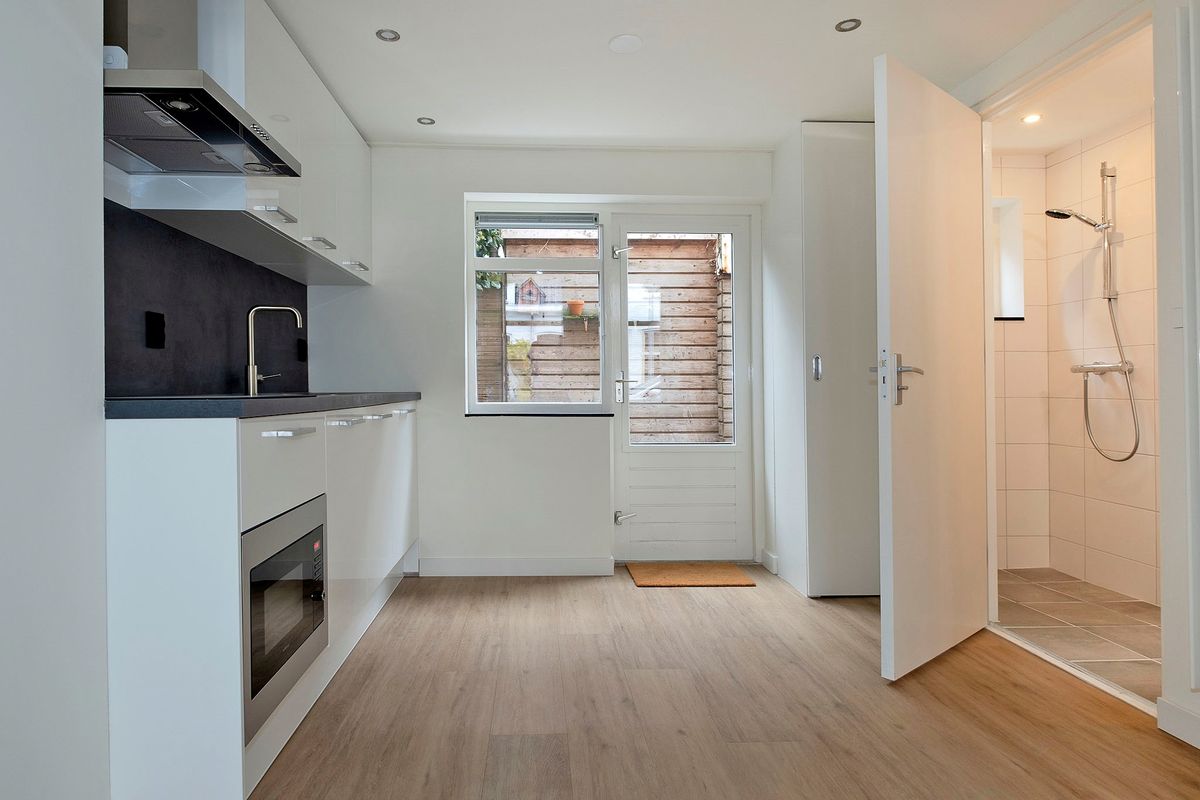 Via de gezamenlijke entree toegang naar de woon/slaapkamer met open keuken, badkamer en plaatsje (zuidoost).