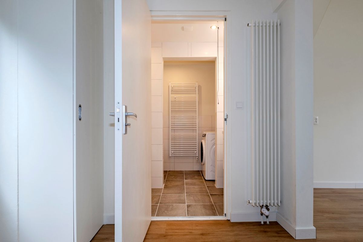 Via de gezamenlijke entree toegang naar de woon/slaapkamer met open keuken, moderne badkamer voorzien van inloopdouche, wc en wastafelmeubel en een plaatsje van 11 m2.