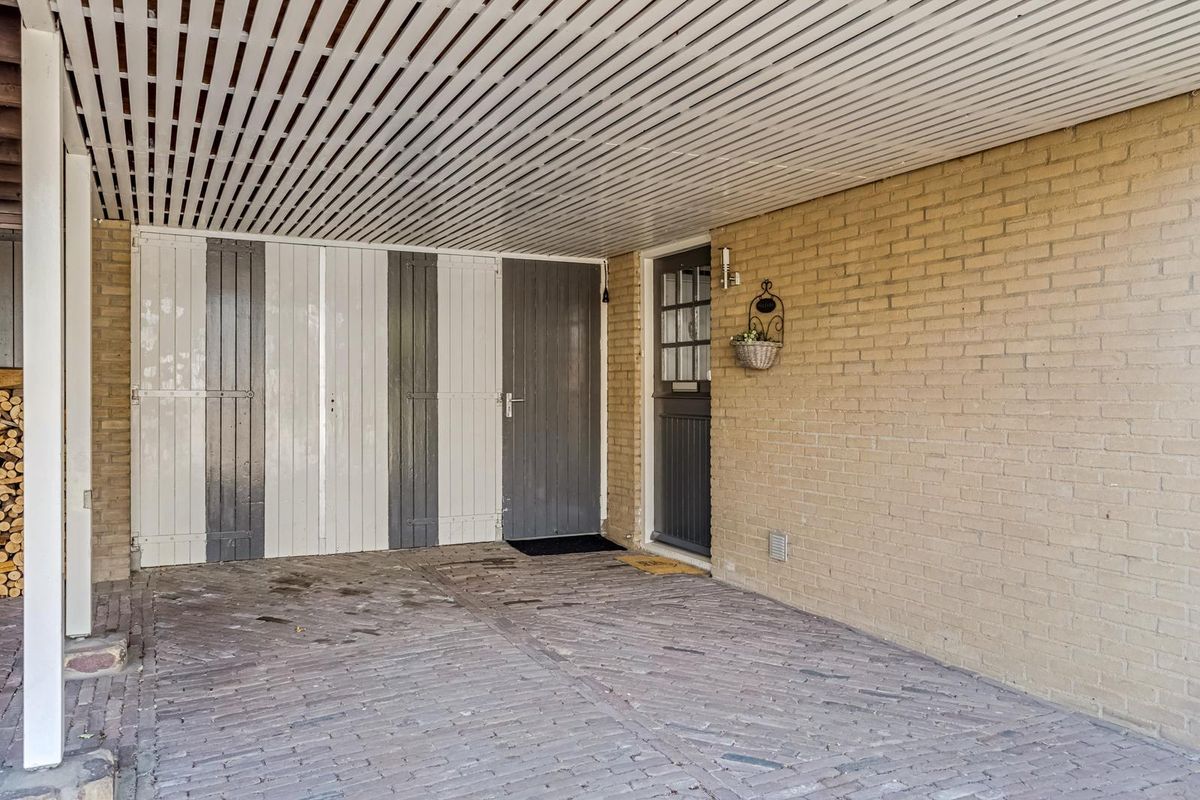 Naast het huis ligt een aangebouwde stenen garage, voorzien van elektra. Hier kun je makkelijk fietsen, gereedschap of tuinspullen kwijt. Of natuurlijk de auto als je die liever binnen zet. Voor de garage ligt een carport, zodat je altijd droog uitstapt. De oprit biedt plek voor een tweede auto, en parkeren in de straat is ook geen probleem.
