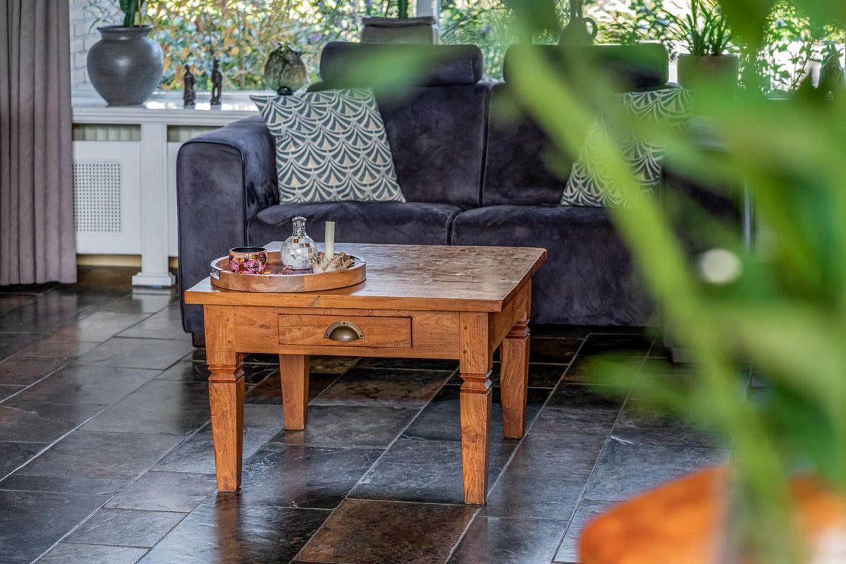 Bij binnenkomst valt meteen op hoe ruim en licht het benedenverdieping is. De woonkamer en eetkamer lopen in elkaar over en de grote ramen aan beide kanten zorgen voor veel natuurlijk licht. Op de vloer ligt natuursteen, wat goed tegen een stootje kan en jarenlang mooi blijft. De vloerverwarming zorgt daarbij voor extra comfort.