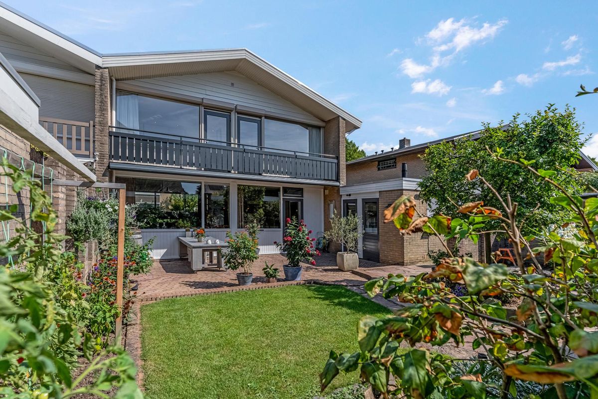 De achtertuin is gezellig ingericht met bestrating, borders en een gazon. Door de ligging op het westen heb je hier in de middag en avond volop zon. Er zijn meerdere zitplekken te creëren, zowel in de zon als in de schaduw onder het (recent vernieuwde) zonnescherm. De gemetselde pizza-oven ziet er niet alleen mooi uit, maar zorgt ook voor extra gezelligheid op zomerse avonden.