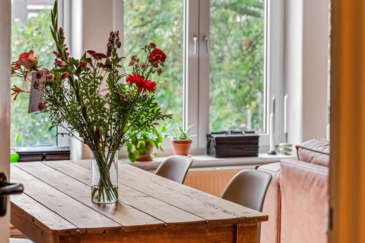 De woonkamer is zonder twijfel het hart van het appartement. Grote ramen laten het daglicht overvloedig binnenstromen en creëren een open en levendige sfeer. De warme houten vloer en neutrale wanden geven een rustige basis die past bij elke stijl. Of je nu uitgebreid wilt dineren, lekker wilt lezen in een zonnige hoek of gezellig wilt borrelen met vrienden, deze ruimte voelt altijd goed.