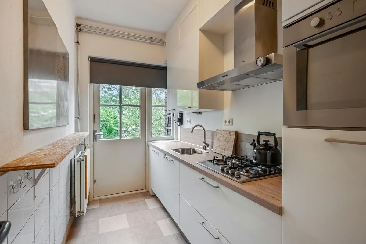 Koken wordt vanzelf leuk in deze moderne keuken. De witte kastfronten in combinatie met het houten werkblad zorgen voor een frisse, tijdloze uitstraling. Alles wat je nodig hebt is aanwezig: moderne inbouwapparatuur, slimme opbergruimte en een praktische indeling. De deur naar het balkon en het raam zorgen voor een fijne lichtinval en een natuurlijke verbinding met buiten.