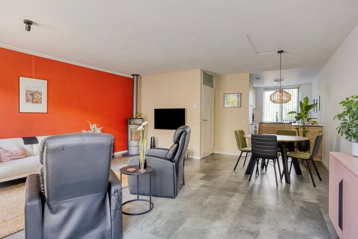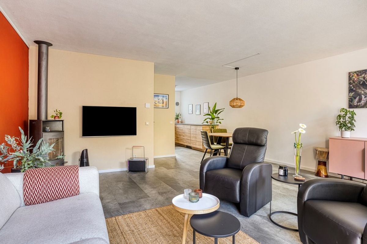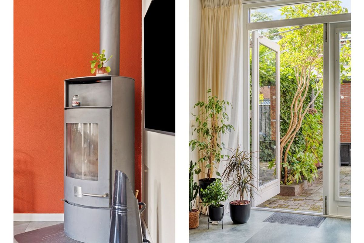 Vanaf het eerste moment merk je het: dit is geen standaardwoning. De brede en lichte woonkamer met sfeervolle houtkachel en openslaande deuren nodigt uit tot lange avonden genieten.