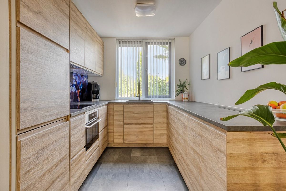 De moderne keuken aan de voorzijde is compleet uitgerust en vormt samen met de living het hart van het huis.
