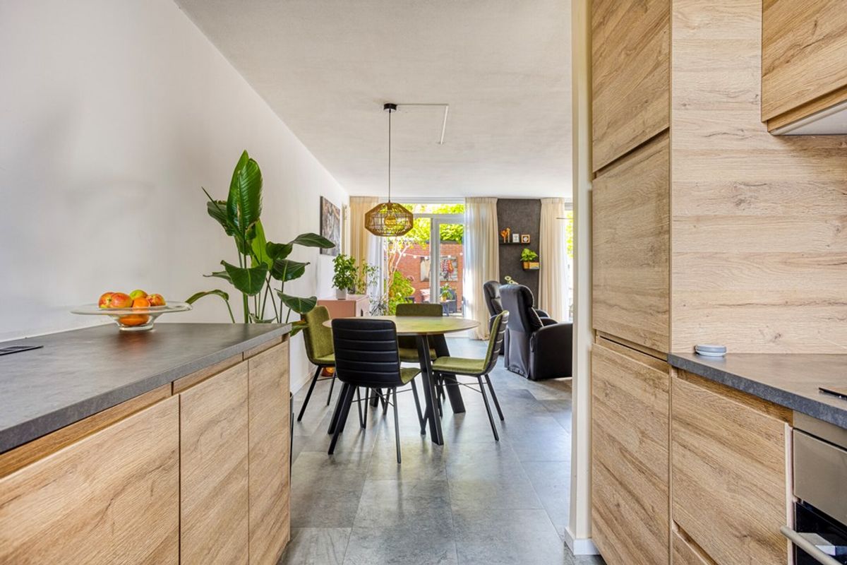 Je komt binnen in de hal met modern toilet en trapopgang. De royale woonkamer straalt warmte uit en biedt volop ruimte. Dankzij de grote ramen en openslaande deuren is er een prachtige lichtinval. De halfopen keuken in hoekopstelling met alle denkbare inbouwapparatuur is praktisch én stijlvol,