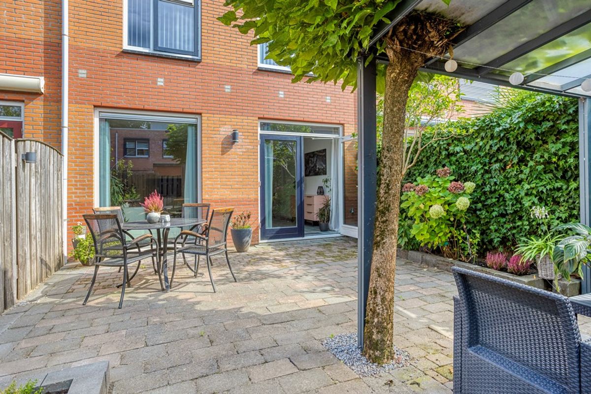 De achtertuin, met een achterom, op het westen is een plek waar je elke dag vakantiegevoel ervaart. Met een stenen berging, overkapping en een zonnescherm geniet je hier optimaal van zon én schaduw. Dankzij de erfafscheiding heb je bovendien veel privacy.