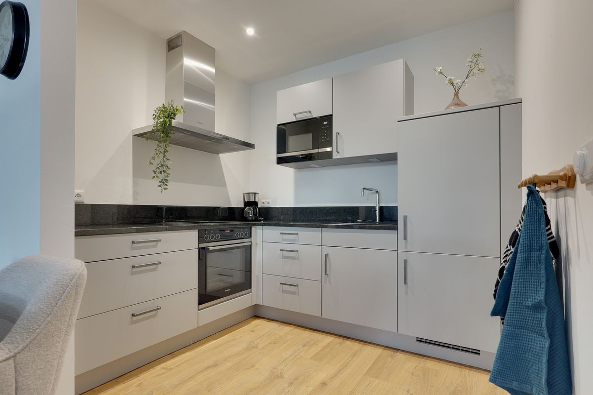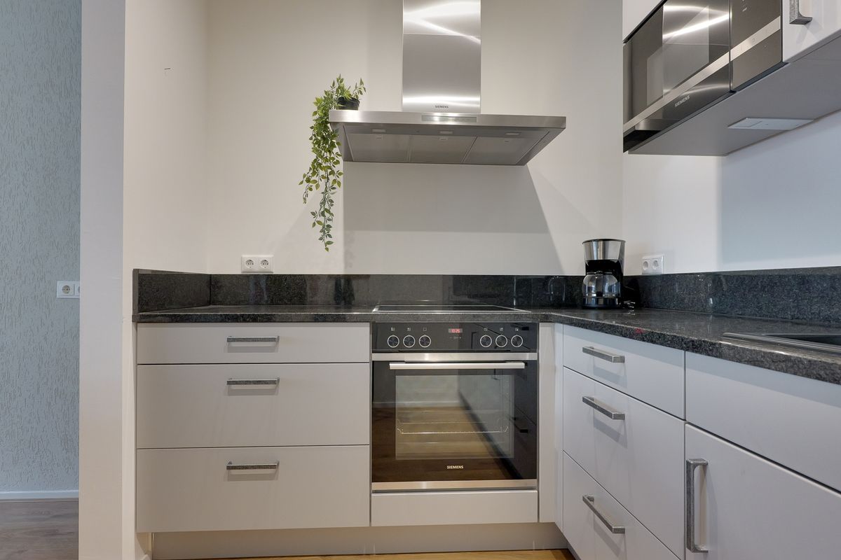 Entree/hal met video-/intercomsysteem, garderobe, kast met wasmachine-aansluiting en elektrische boiler, toegang tot de zonnige, sfeervolle woonkamer van ca. 29 m² met prachtig vrij uitzicht en een open keuken met Siemens inbouwapparatuur, waaronder een oven, magnetron, inductiekookplaat, afzuigkap, koel-vriescombinatie en Quooker. Ook is er toegang tot het balkon/loggia van ca. 6 m² en de ruime slaapkamer van ca. 16 m² met veel daglicht, aangrenzend is de moderne badkamer met wastafelmeubel, ruime inloopdouche en hangtoilet. Deze ruimte is tevens vanuit de hal bereikbaar.