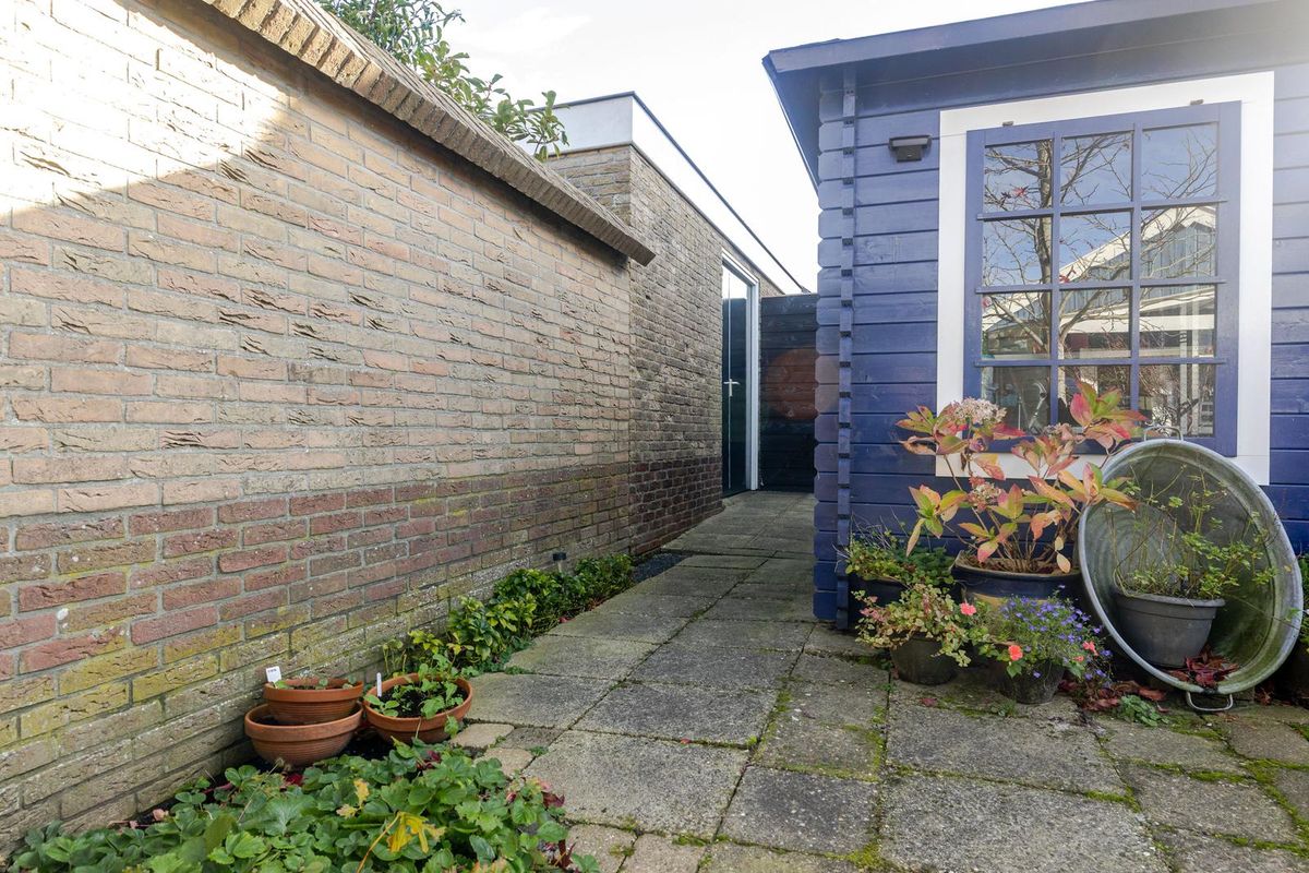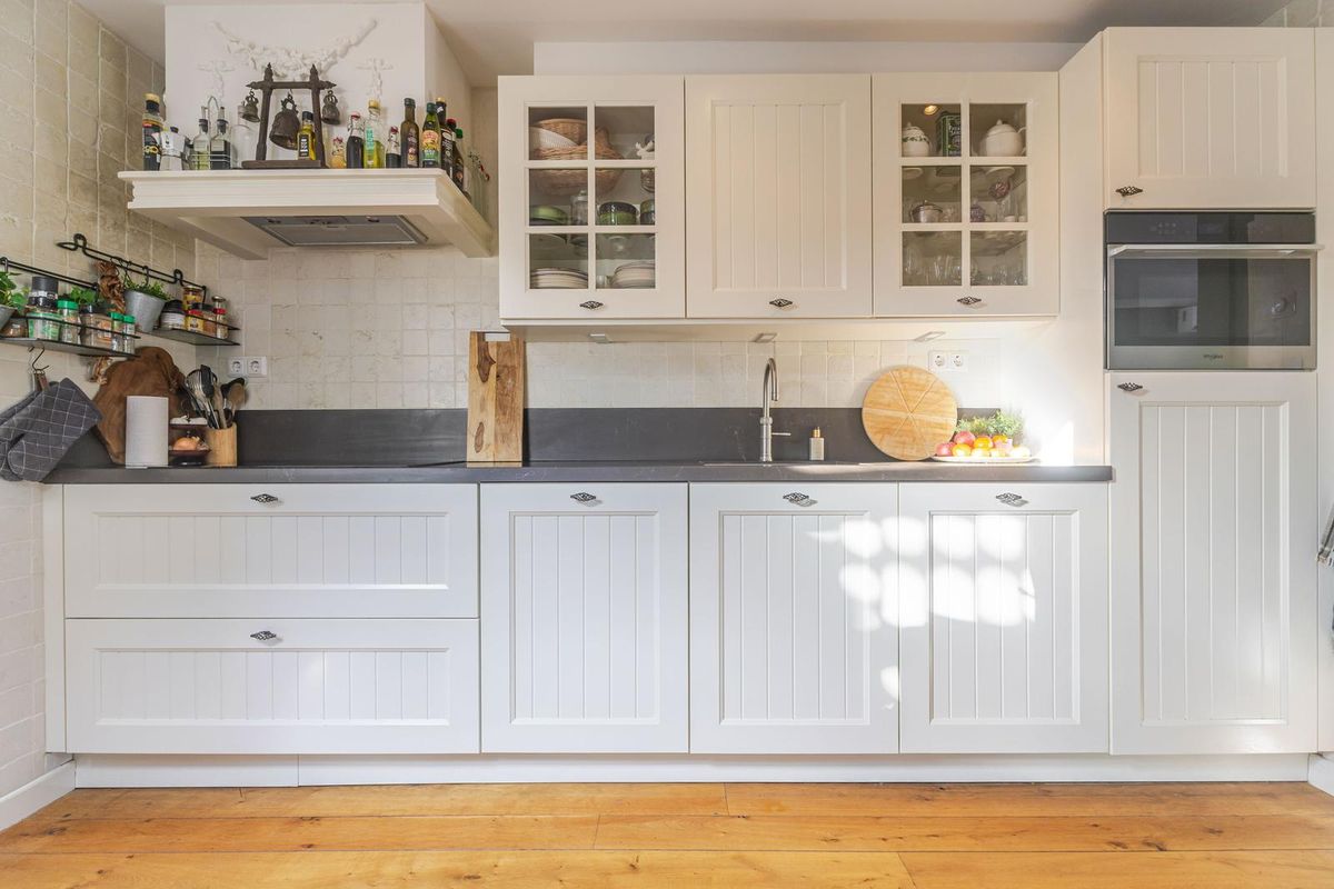 Entree, hal, net toilet met hangscloset, meterkast, trapopgang, ruime woonkamer met sfeervolle erker, ruimte voor een grote eettafel, open keuken in een rechte opstelling met koelkast, vaatwasser, inductie kookplaat, combi oven, afzuigkap en een Quooker. Aansluitend de aangebouwde bijkeuken met aansluiting voor de wasmachine en een vaste kast. Via de woonkamer met schuifpui of de bijkeuken is de serre te bereiken. De achtertuin is netjes aangelegd en via de steeg aan de achterzijde te bereiken. Als laatste de ruime vrijstaande berging/schuur.