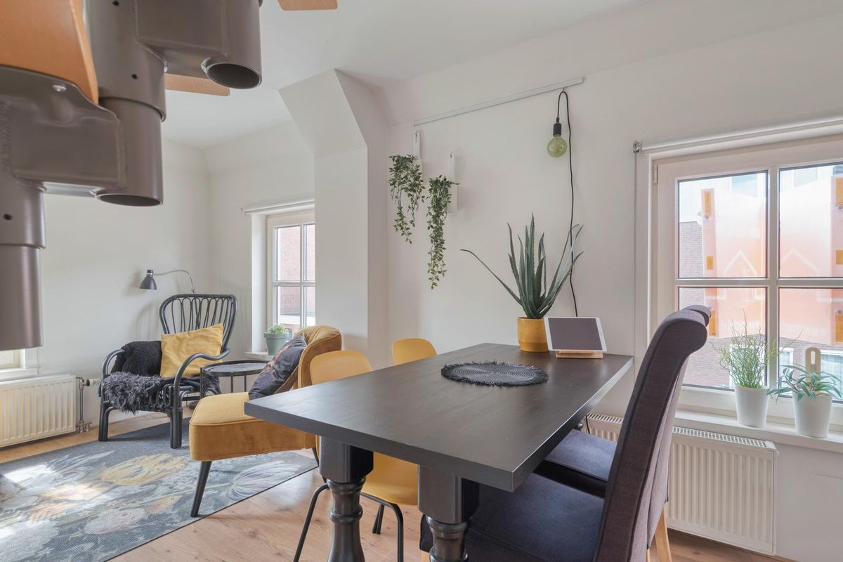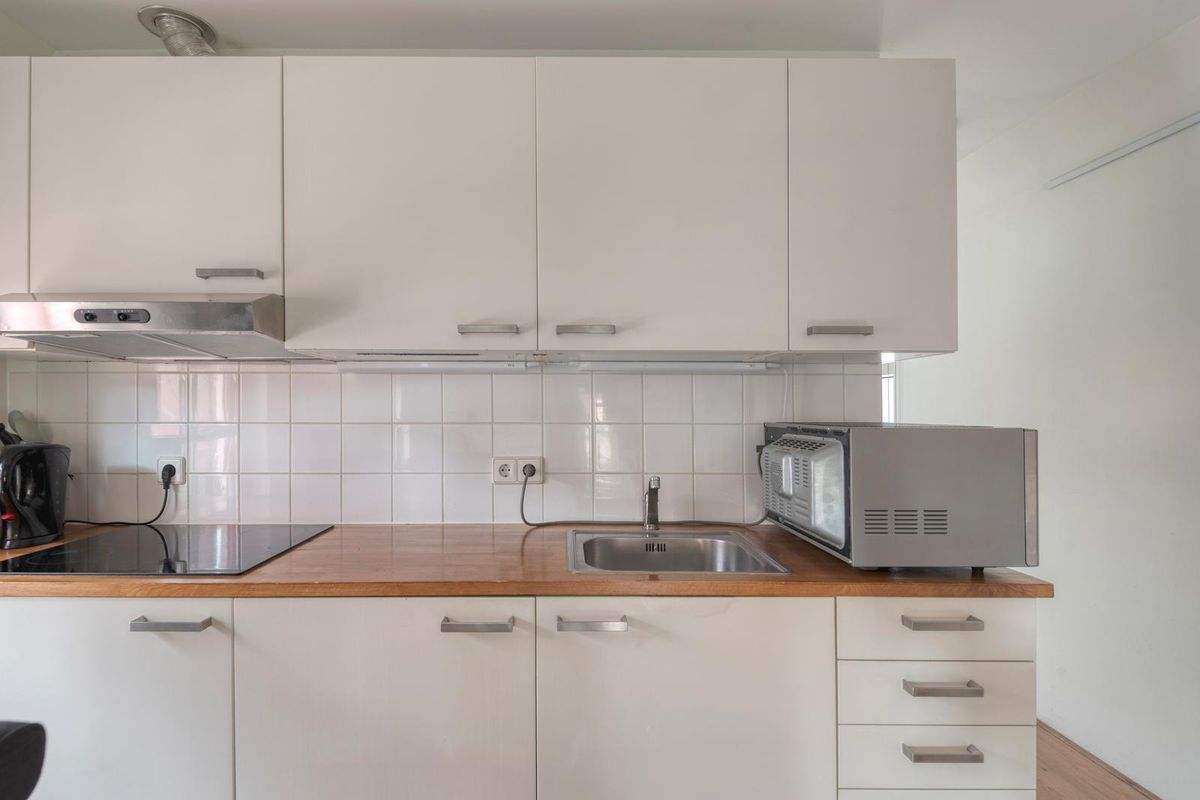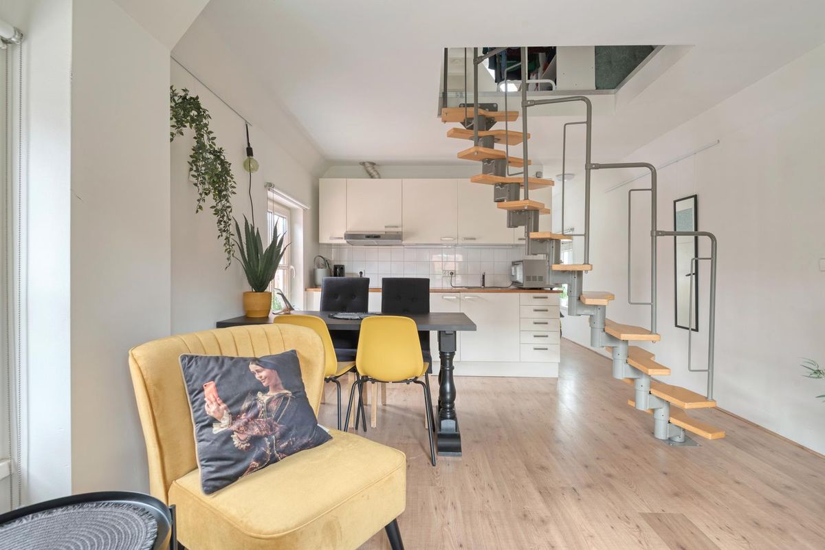 Aan de zijde van Doelenstraat 19, een woon-/slaapkamer van circa 18 m² groot met een keukenblok en een vijfde badkamer. Via een vaste trap is de bergruimte/slaapkamer op de derde verdieping te bereiken.