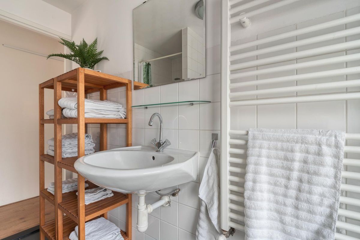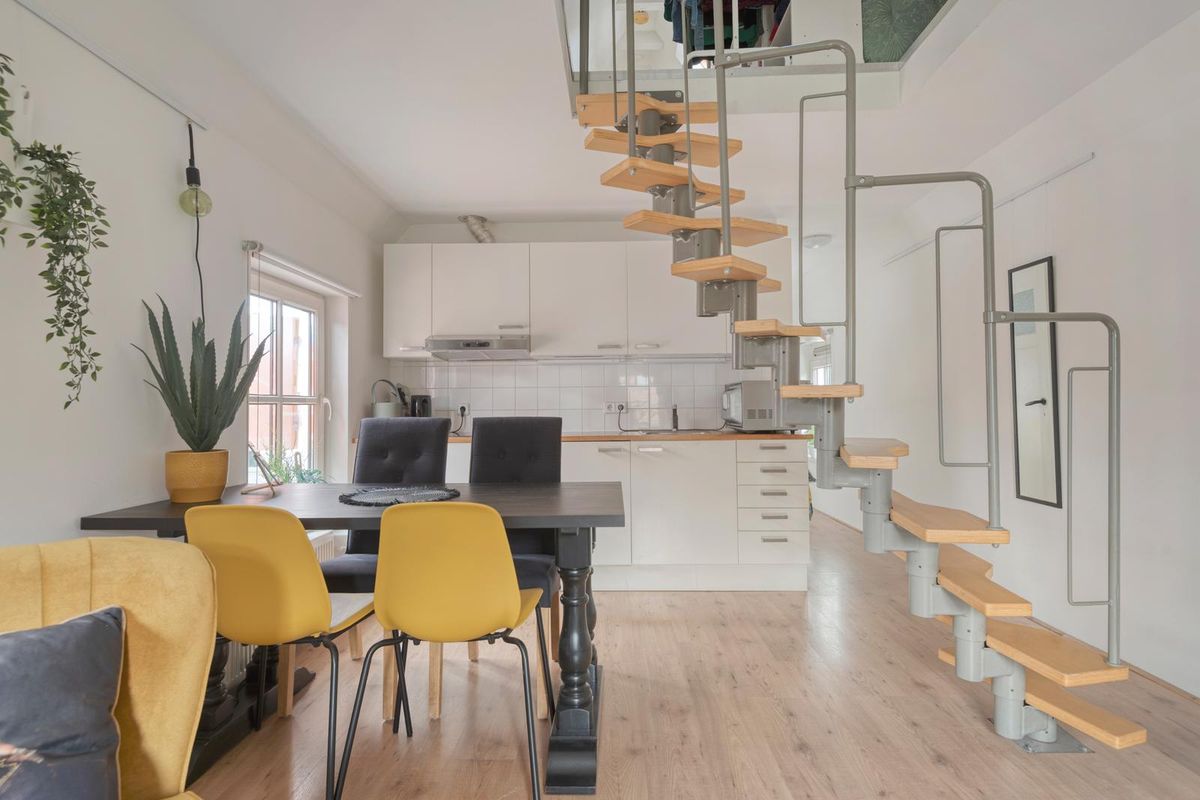 Aan de zijde van Doelenstraat 1A, een woon-/slaapkamer van circa 18 m² groot met een keukenblok en een vierde badkamer. Via een vaste trap is de bergruimte/slaapkamer op de tweede verdieping te bereiken.