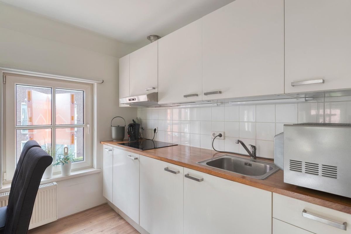 Aan de zijde van Doelenstraat 19, een woon-/slaapkamer van circa 19,5 m² groot met een keukenblok, een slaapkamer (circa 10 m²) en een derde badkamer