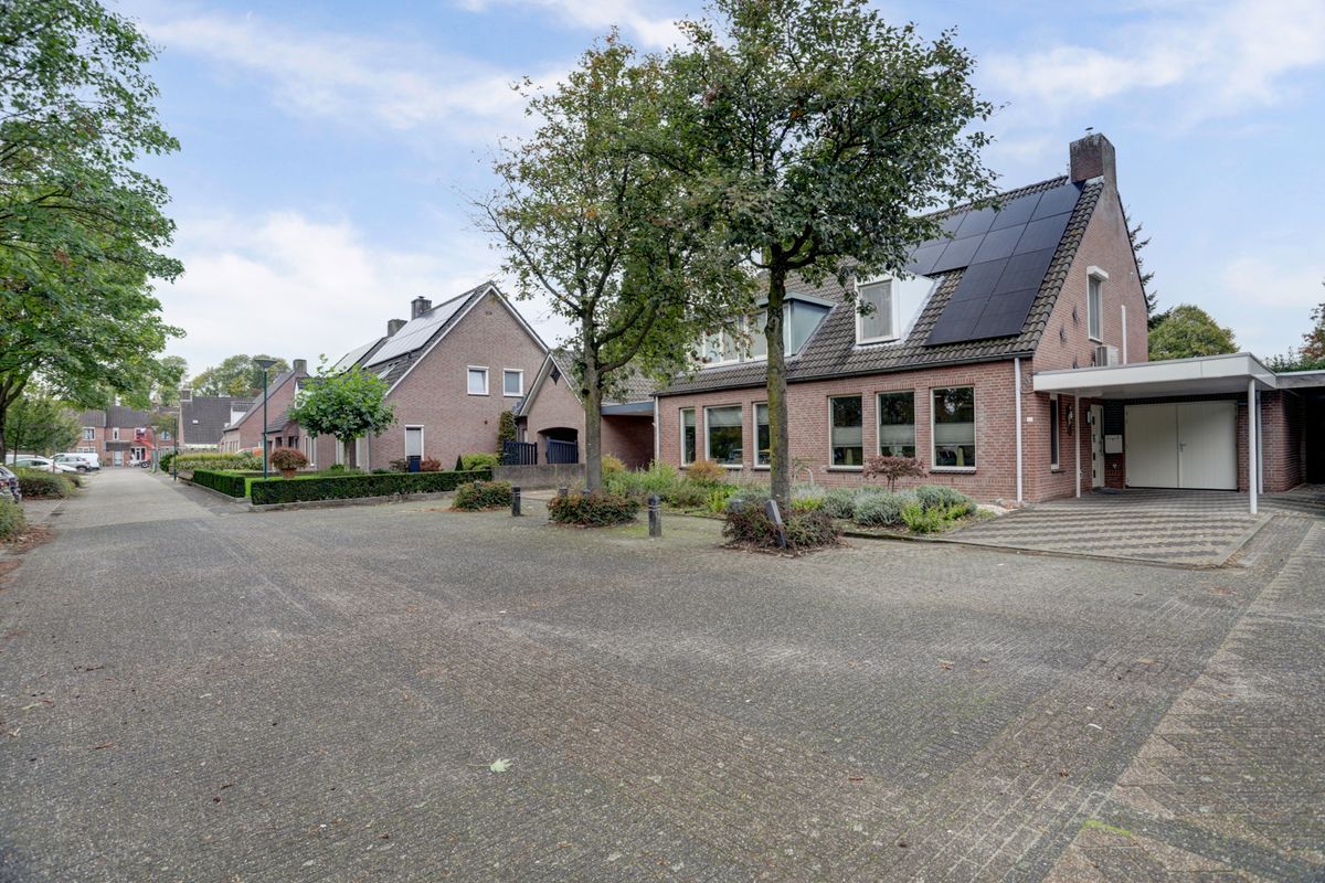 De voortuin is keurig aangelegd en aan de rechterzijde van de woning is een eigen oprit met carport aanwezig, ruim genoeg voor twee auto's te parkeren. Vanaf de oprit heb je directe toegang tot de voordeur van de woning of via de loopdeur naar de garage.