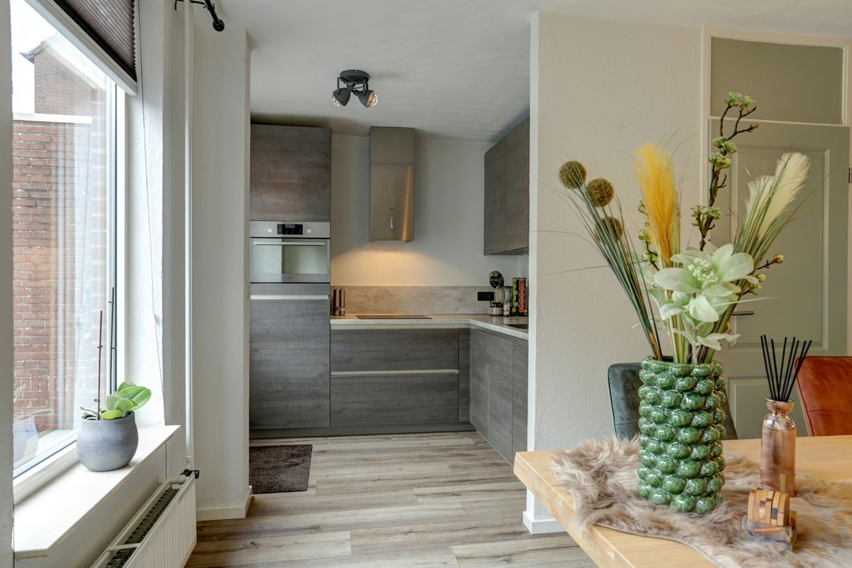 De keuken is gelegen aan de achterzijde van de woning, waardoor je tijdens het koken altijd geniet van veel daglicht. Deze moderne hoekopstelling in een trendy kleur biedt alles wat je nodig hebt om dagelijkse de lekkerste maaltijden te bereiden.