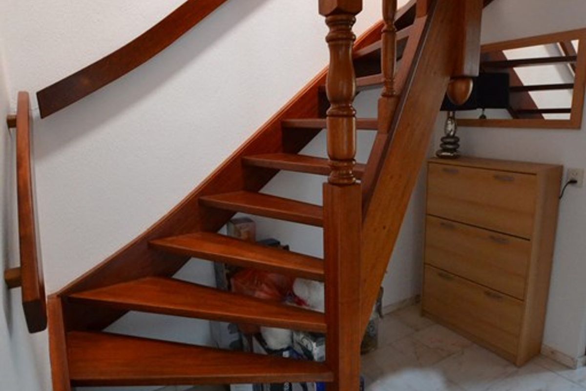 Overloop 2,50 x 1,90 met laminaatvloer en vlizotrap naar zolderverdieping.