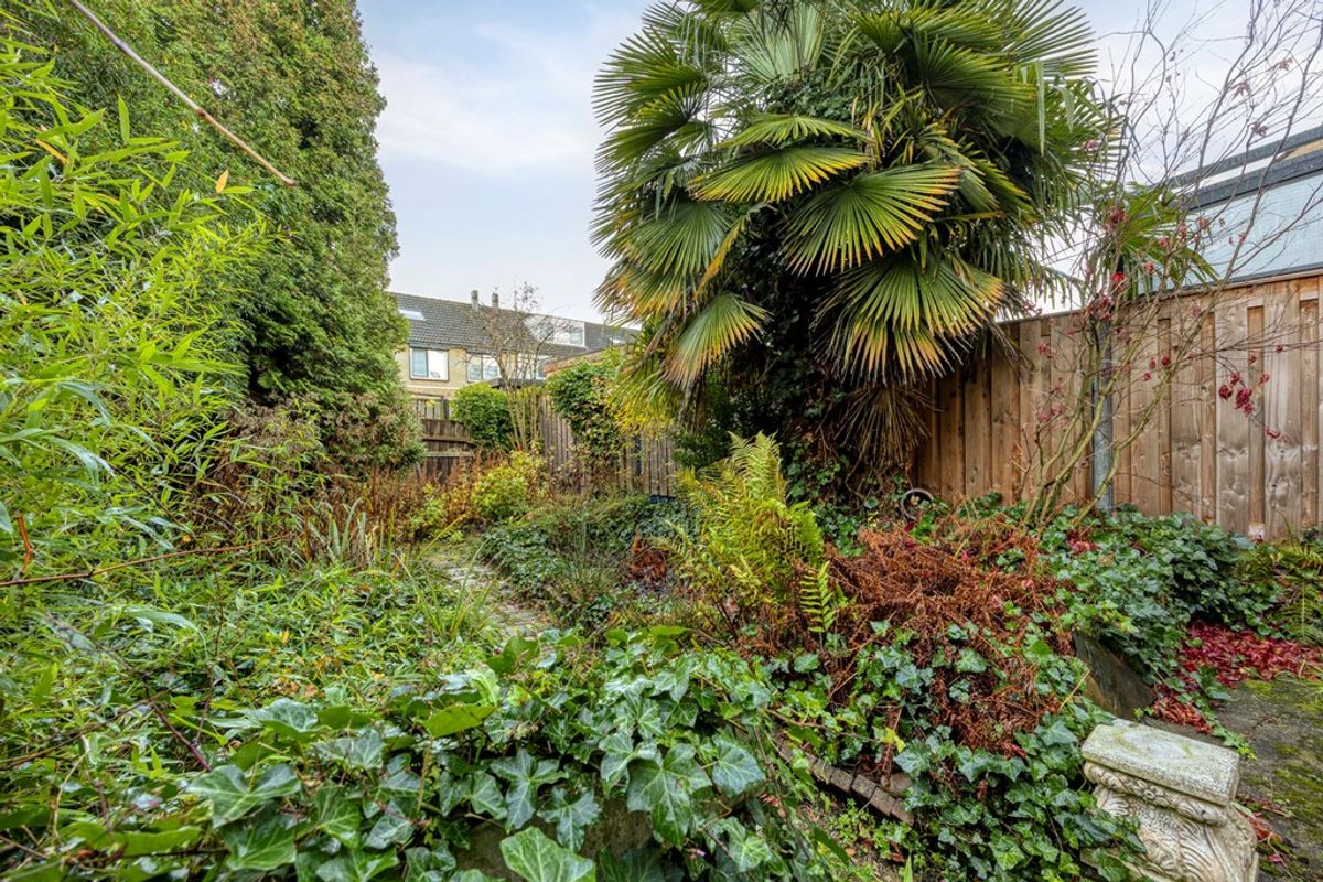 De achtertuin is een groot pluspunt. Dankzij de ligging op het zuiden geniet je hier de hele dag van de zon. Er is voldoende ruimte voor een loungeset, een grote eettafel en eventueel speelruimte voor kinderen. De tuin heeft een achterom, wat prettig is voor fietsen en tuinspullen.