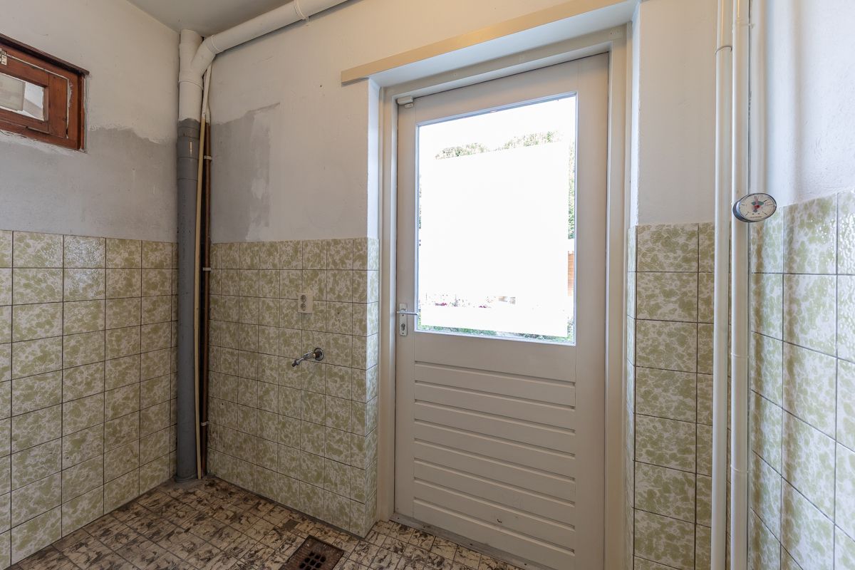 Aansluitend bevindt zich een praktische bijkeuken, waar ook de waterboiler is geplaatst en extra bergruimte aanwezig is. Via de bijkeuken heb je bovendien direct toegang tot de achtertuin.