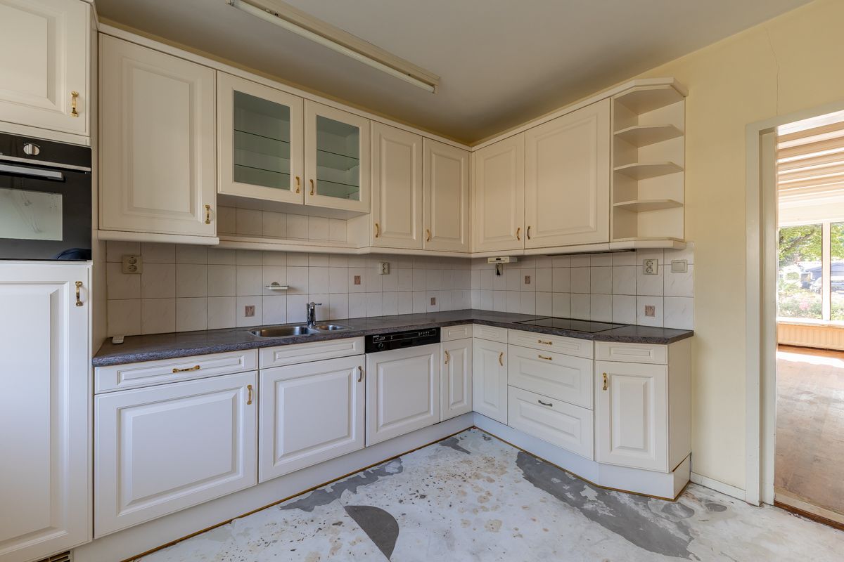 De keuken is compleet uitgerust met diverse inbouwapparatuur: een vaatwasser, afzuigkap, koelkast, inductiekookplaat en een combimagnetron.