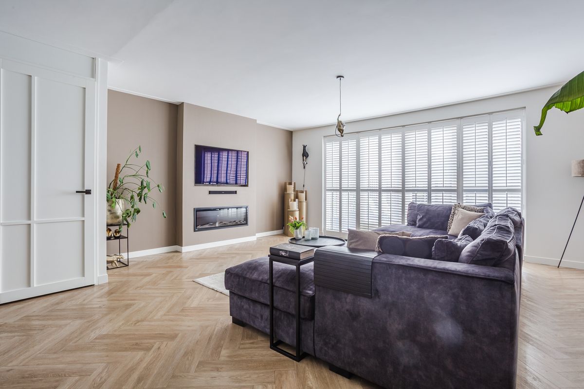 Verder is de woonkamer uitgebouwd, waardoor je er van extra veel ruimte profiteert.