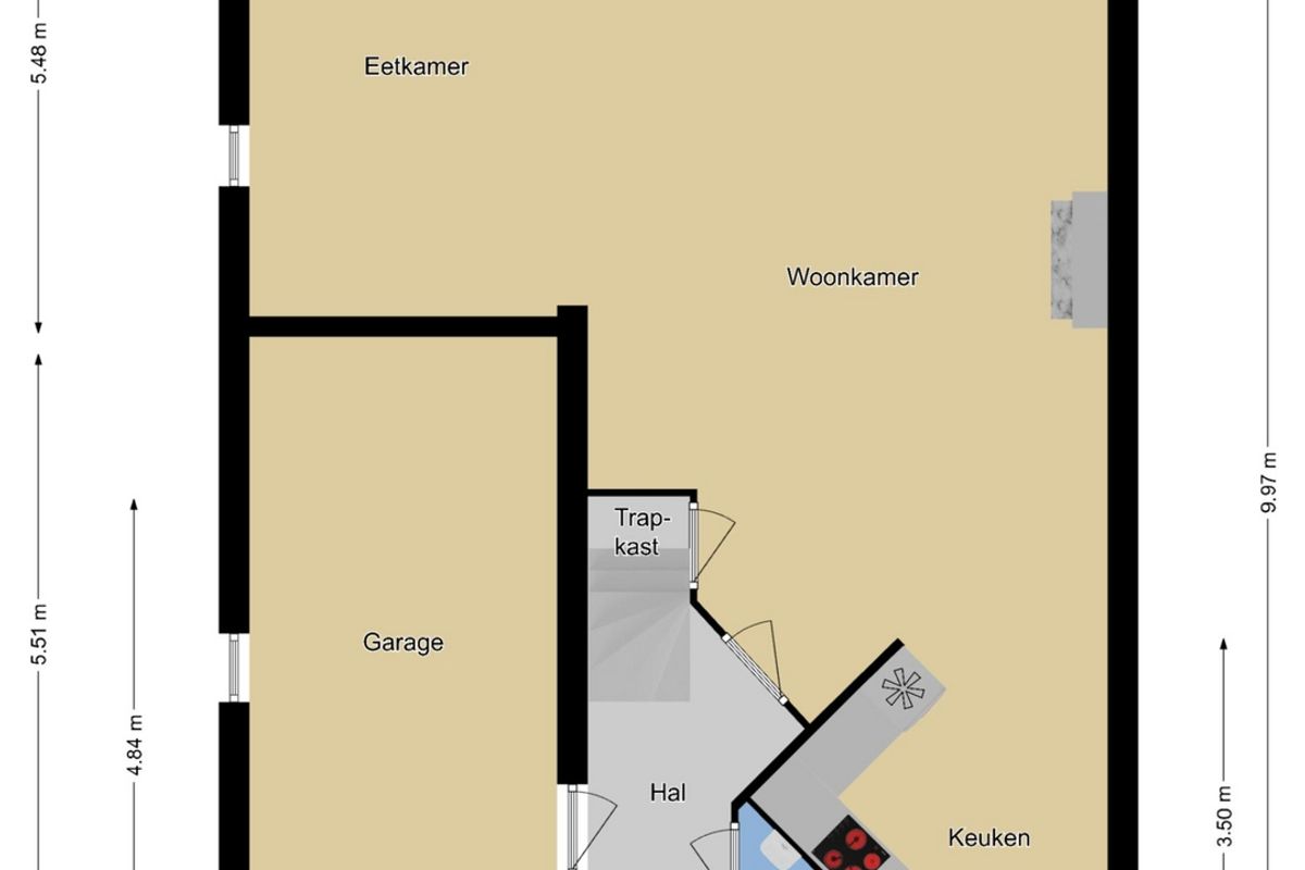 en een praktische trapkast.