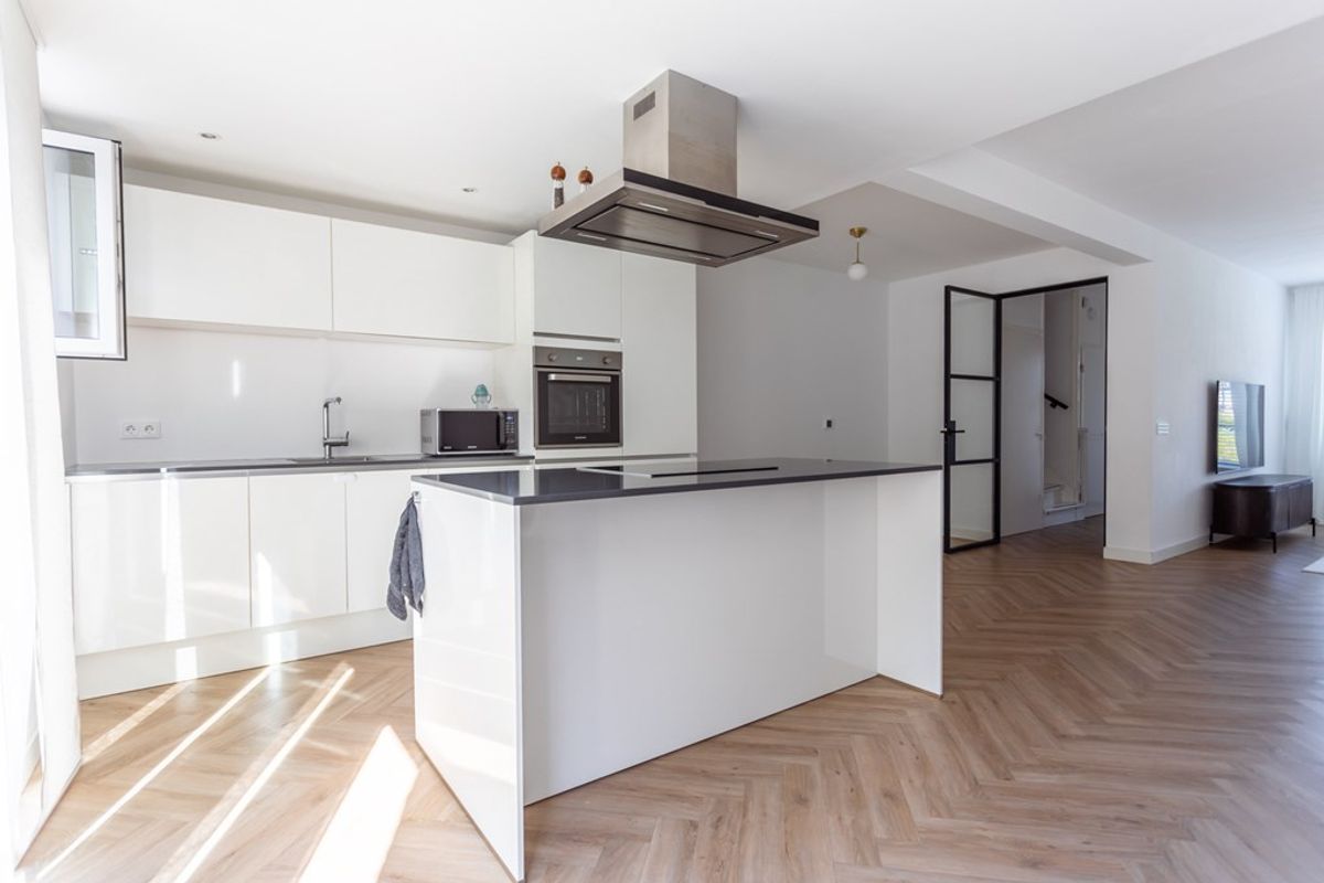 Aan de achterzijde vind je de moderne open keuken in hoekopstelling met een strak kookeiland. De keuken is voorzien van diverse inbouwapparatuur en grenst direct aan de eethoek – perfect voor gezellige avonden met familie of vrienden.