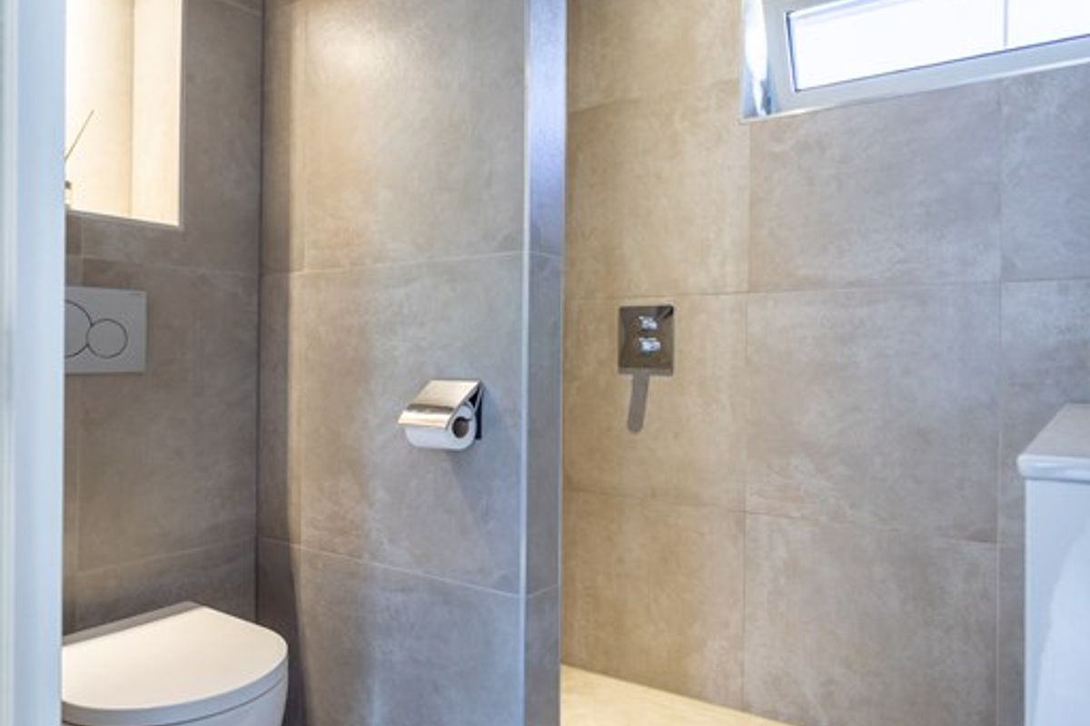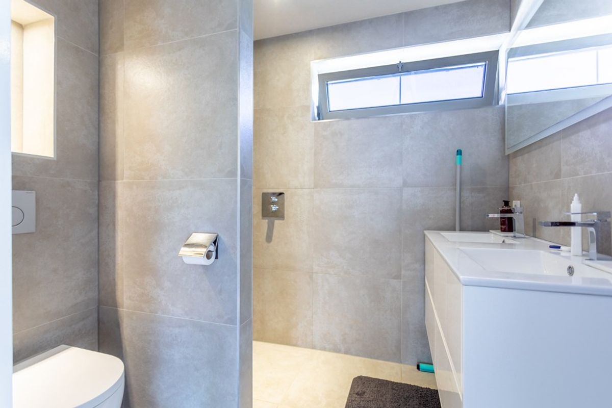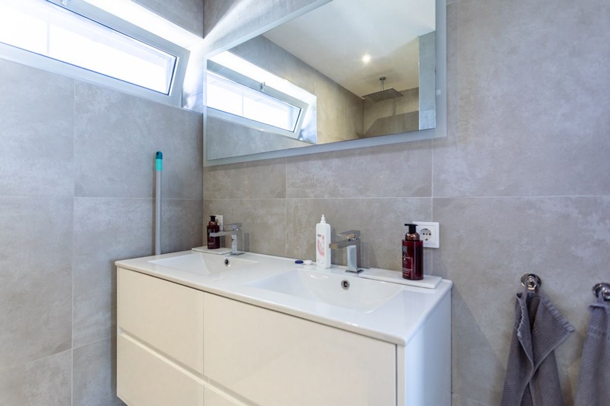Op de eerste verdieping zijn drie ruime slaapkamers gesitueerd, allemaal keurig afgewerkt en voorzien van vloerverwarming. De moderne badkamer beschikt over een inloopdouche, wastafelmeubel en een tweede toilet.