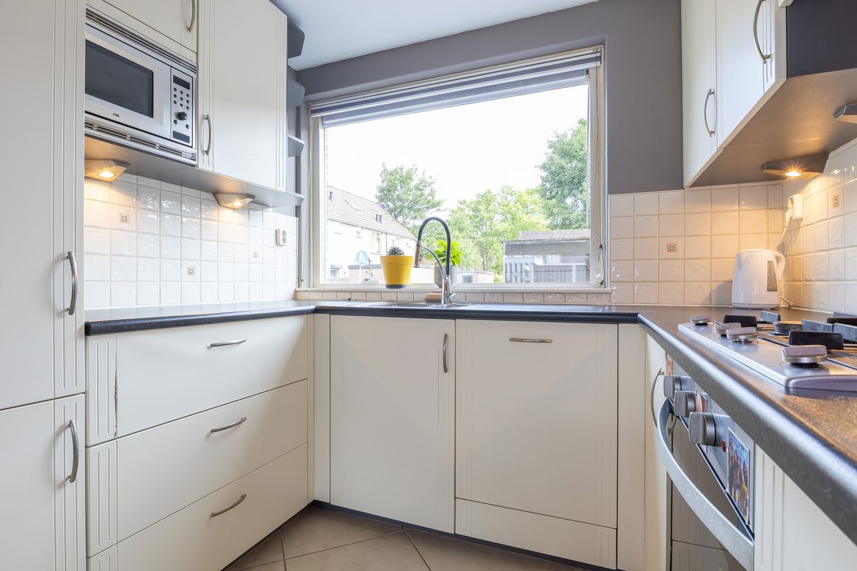• De keuken is onder anderen voorzien van een gaskookplaat, afzuigkap, vaatwasser, oven, magnetron, koelkast en vriezer.
